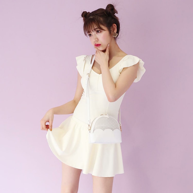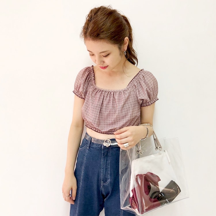 ガーリーで夏らしい素材のアイテムを合わせて、涼しげな雰囲気をプラス。