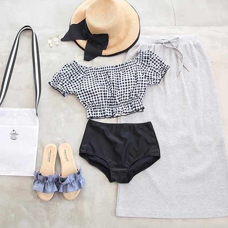 体型をカバーできる肌の露出を抑えた水着をピックアップ。