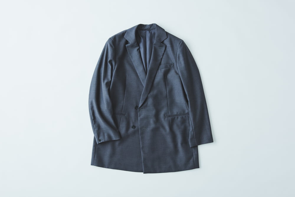 Lui'sオリジナルのNEWコーケット。コートとジャケットの要素を組み合わせたユニークなデザインが特徴的です。通年着用できるT/R素材を使用しており、滑らかなタッチと微光沢による綺麗目な印象のアイテムです。