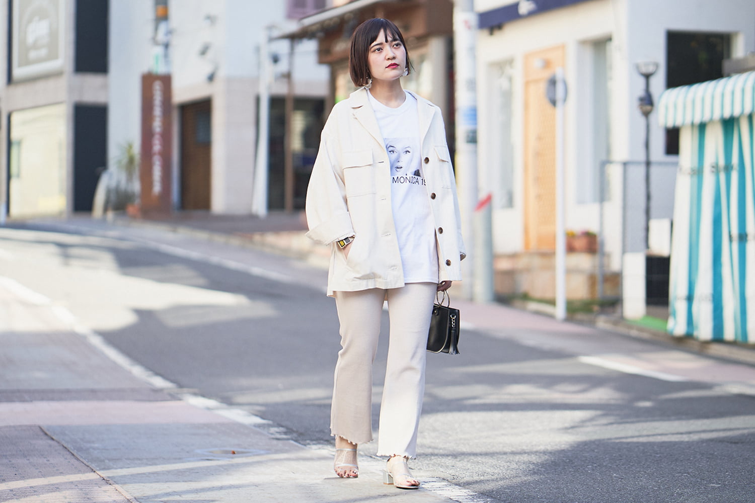 ビッグシルエットのジャケットに、超美シルエットなパンツがオススメすぎます♡ 暖かくなってきたので、春アウターでお散歩にでかけたいですね!