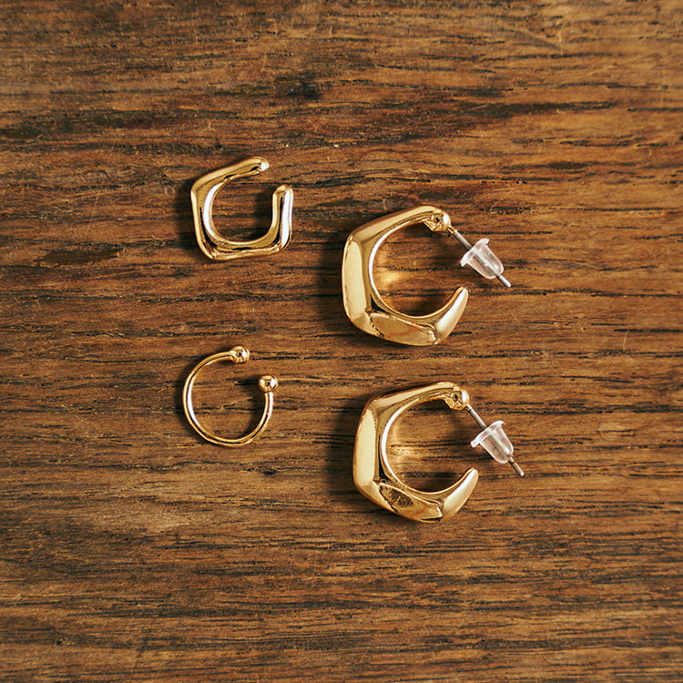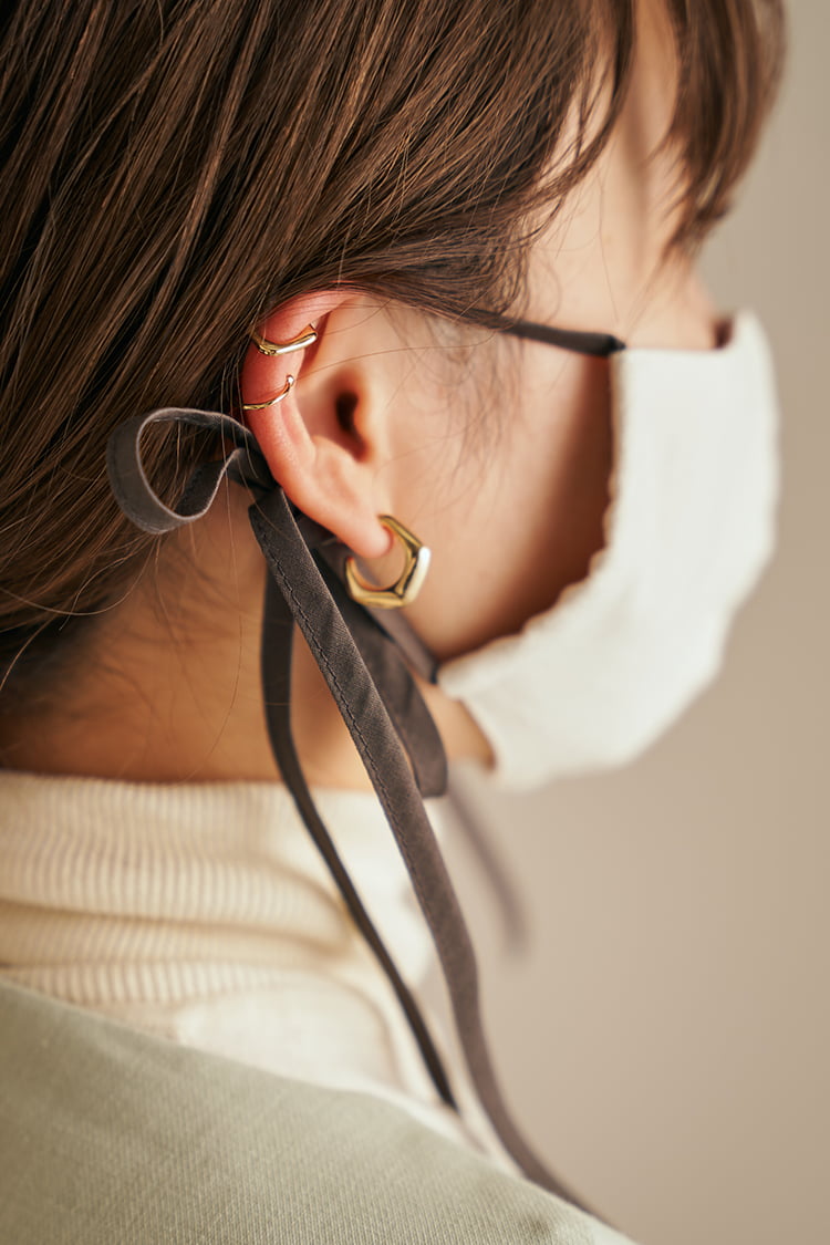 スタイルを選ばないミニフープピアスとイヤカフはセットの使用がおすすめ。幅広いシーンでお使いいただけます!