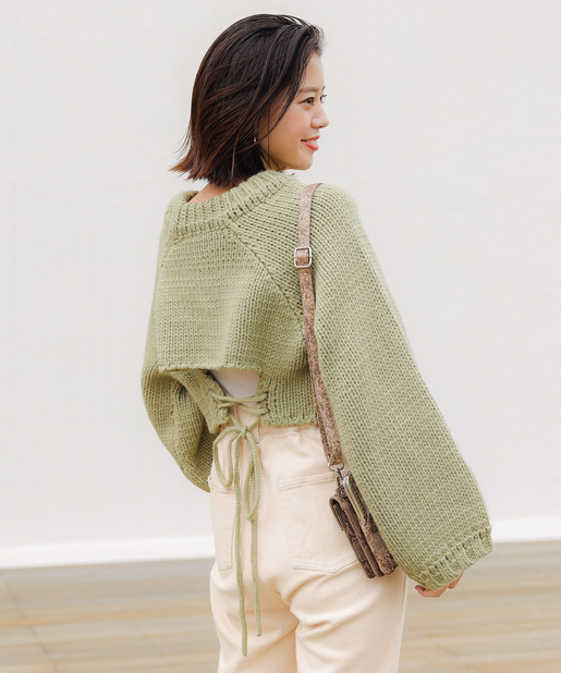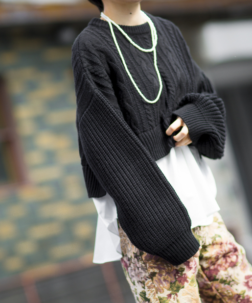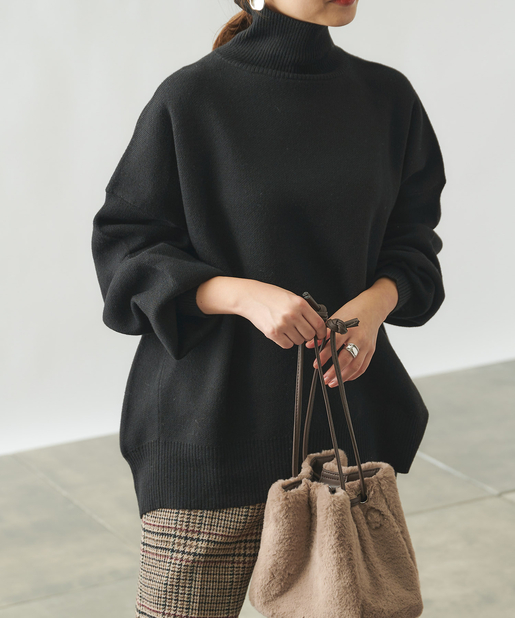 余裕のあるシルエットを選ぶと厚手のニットも着こなせます。