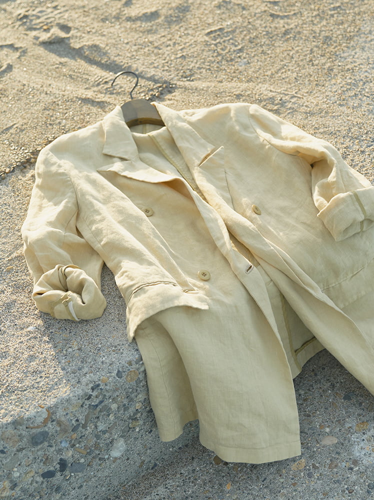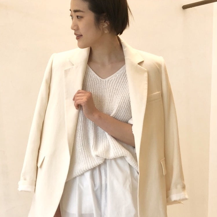 シワになりにくい加工を施しチクチク感を軽減した生地を使用した、羽織りやすい「リネンジャケット」です。マニッシュなボックスシルエットながら、柔らかな風合いで女性らしさも兼ね備えたアイテムに。