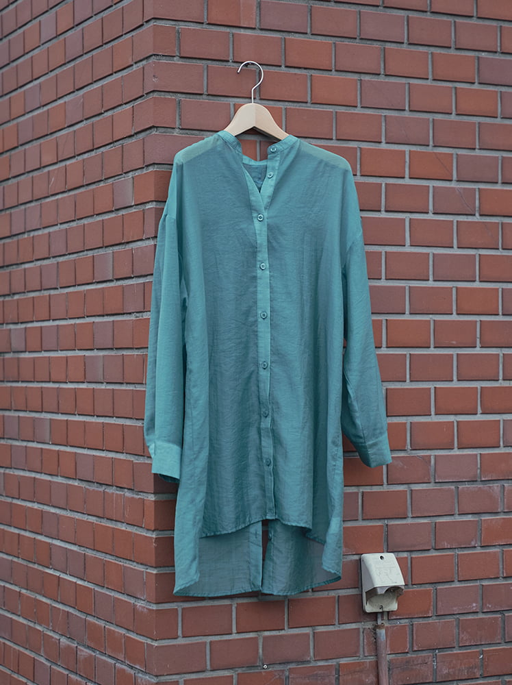 透け感のあるトレンド素材で仕立てた、一枚で主役になる「シアーシャツ」です。フロントを開けてキャミソールやノースリーブの上から羽織りとしても着ていただける、シーズンレスアイテムです。