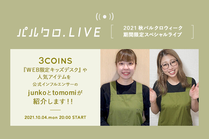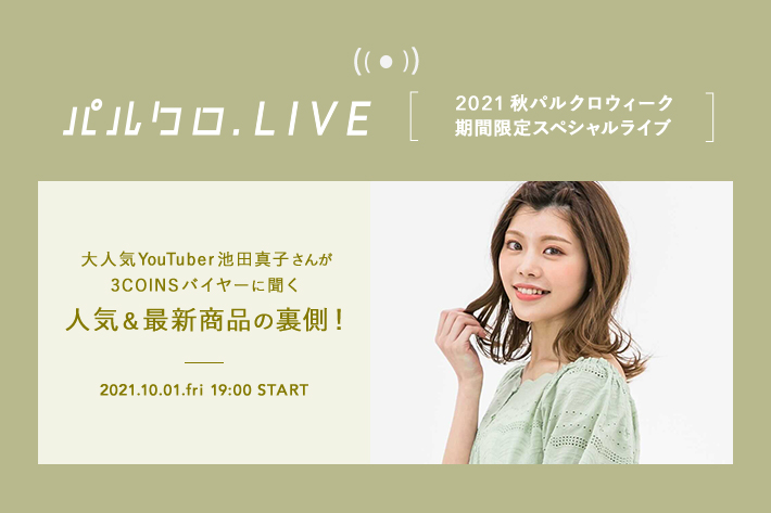 3COINS初のライブコマースは大人気YouTuberの池田真子さんをゲストにお迎えし、秋ファッションのポイントになるバッグや小物、季節の変わり目のケアにもぴったりな美容家電やコスメなど豊富なラインナップをご紹介します。是非ご覧ください。