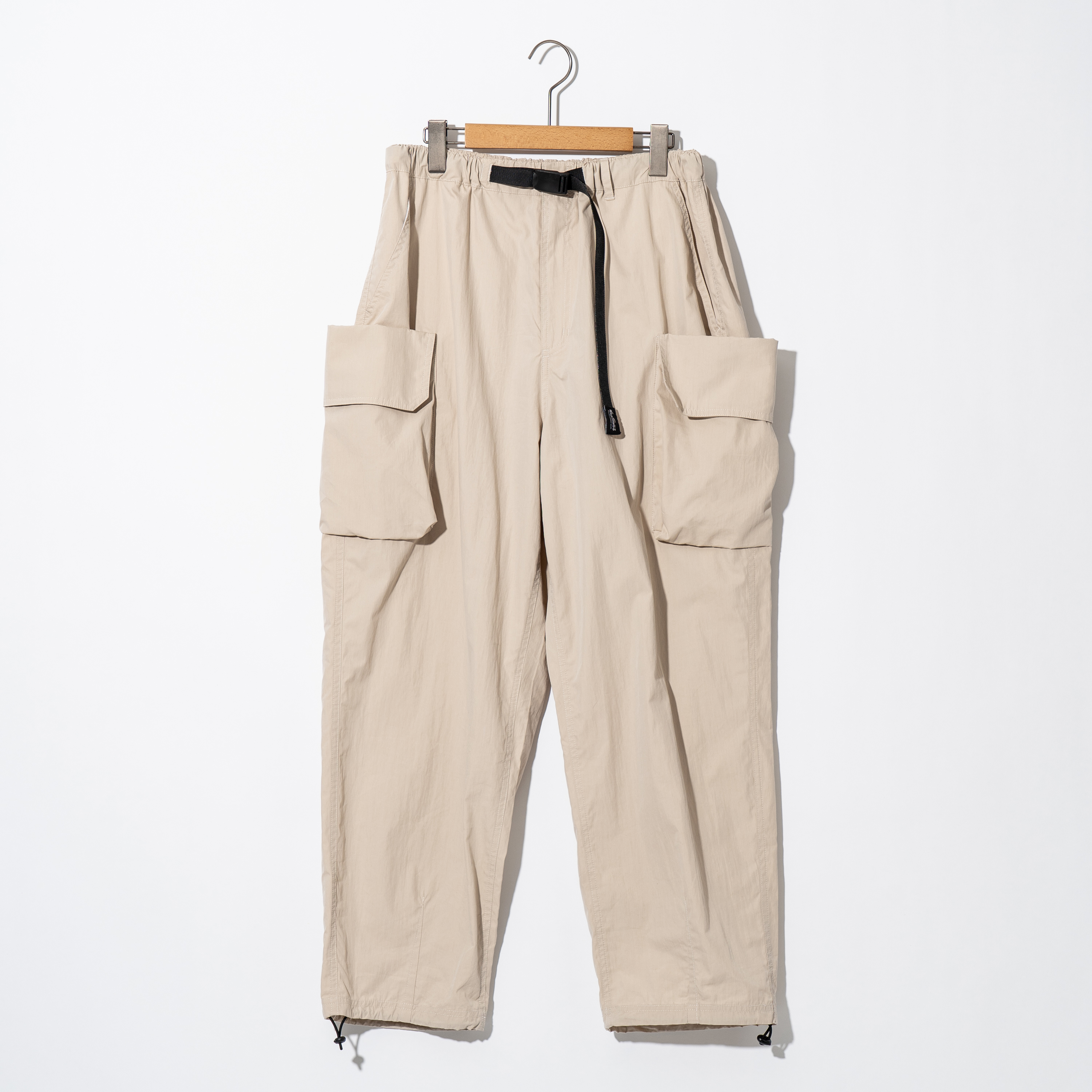 WILDTHINGSに別注したカーゴパンツ。綿とナイロンの混紡素材で、さらっとした肌触りが特徴です。夏でも履きやすく、シーズン長く愛用して頂けます。大きいサイドポケットは収納力も抜群で、軽装になる春夏シーズンに活躍すること間違いなし。