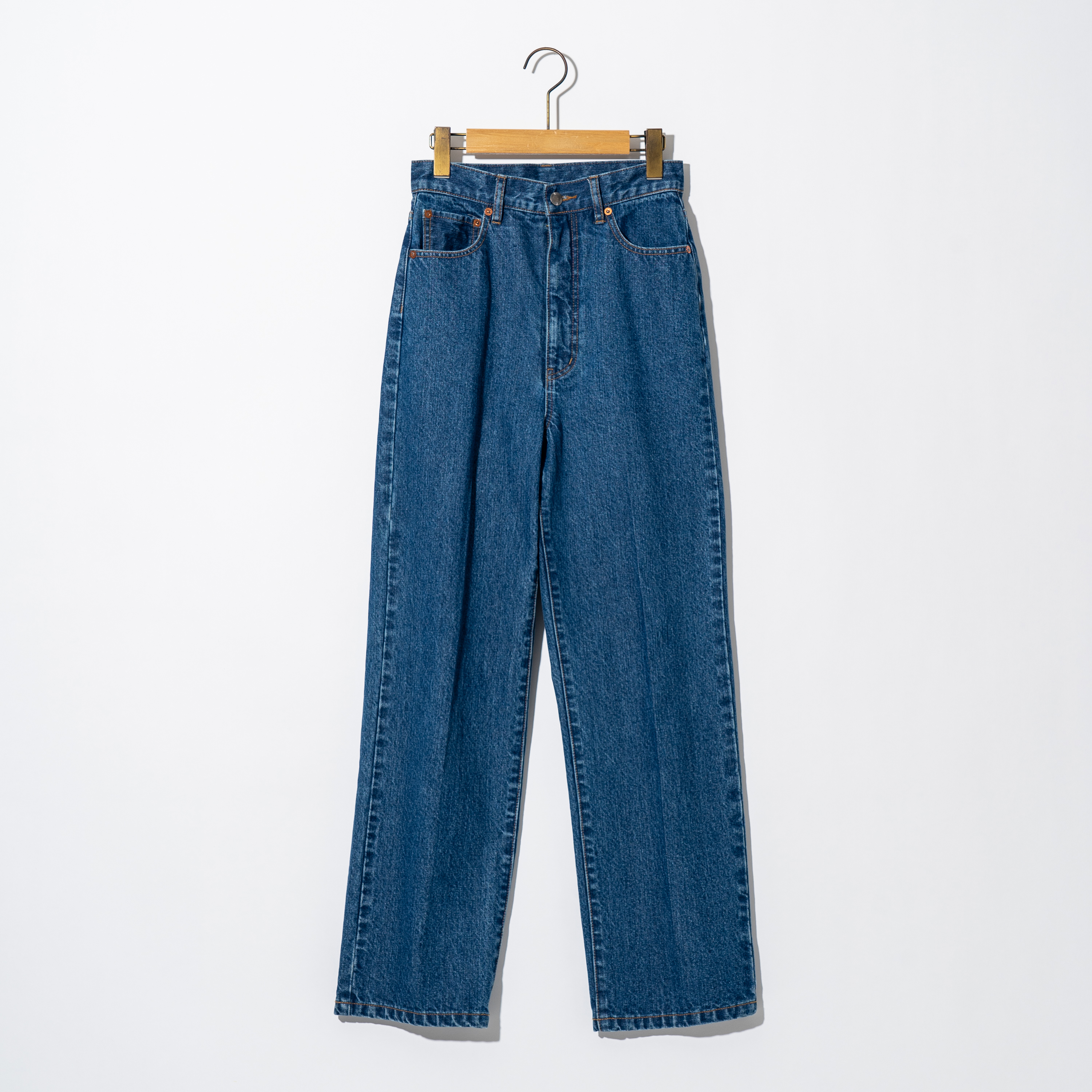 美脚・脚長効果絶大のこだわりぬいたハイウエストデニム。腰回りからストンとストレートに落ちるシルエットとセンタープレスがポイントです。あえて加工感をださずクリーンな印象のブルーと、絶妙な淡い色味がお洒落なホワイトベージュの2色展開。