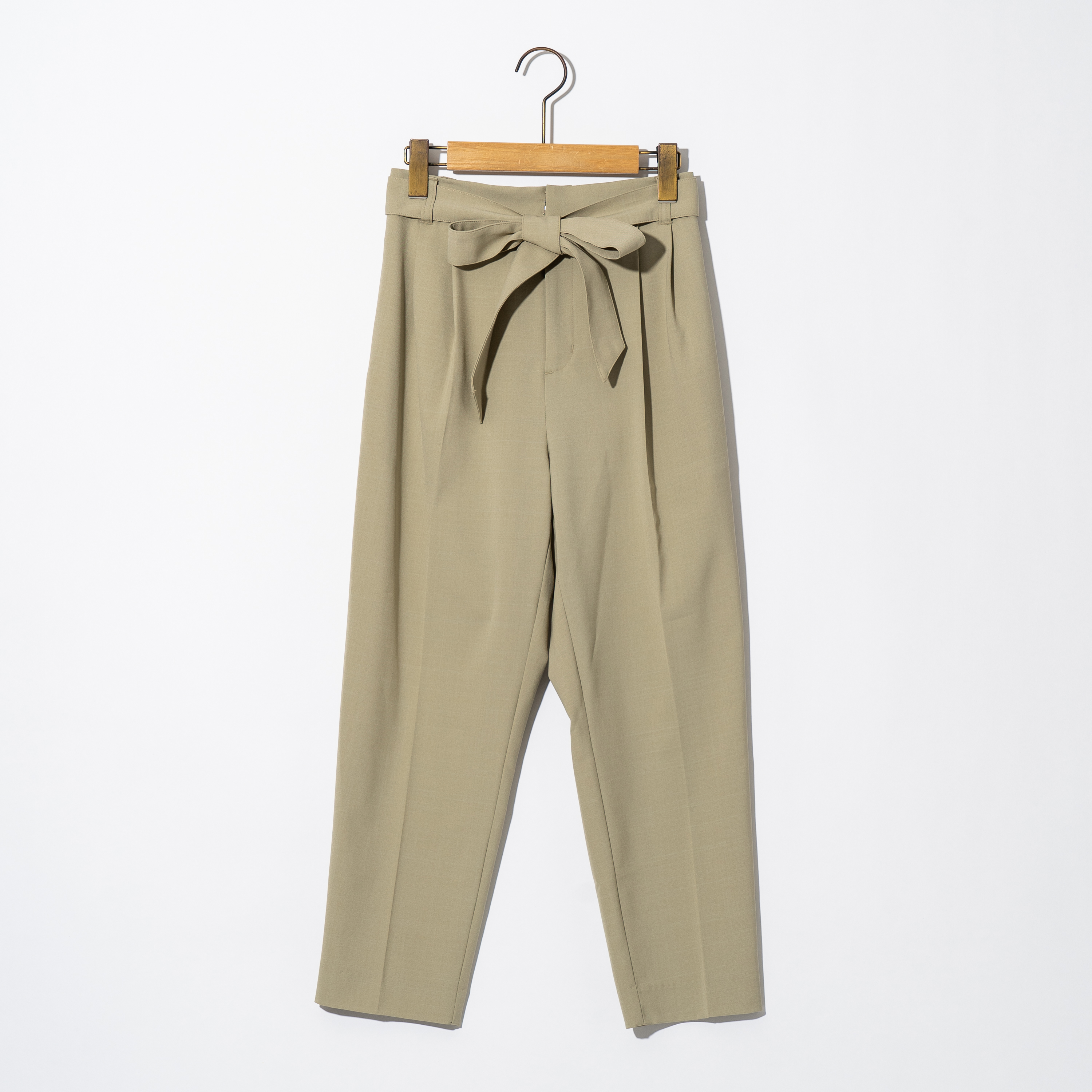リネンのような爽やかな風合いが楽しめるのに、お手入れも簡単なリネンライク素材。サイズ展開もあるので、小柄な方でも綺麗なシルエットでパンツをお楽しみ頂けます。取り外し可能なリボンベルト付きなので、インスタイル・アウトスタイル、様々なコーディネートで活躍する1着です。