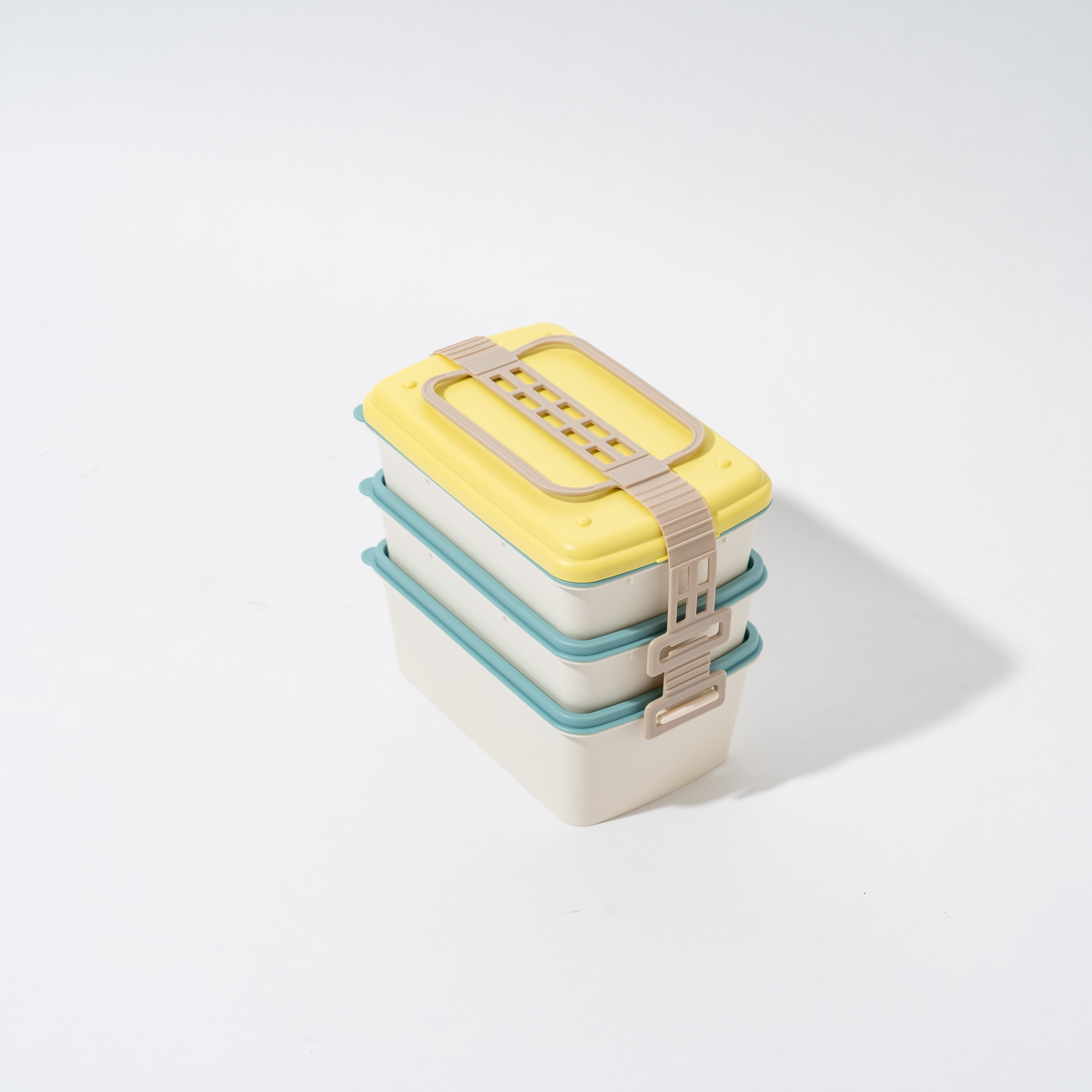 大容量ランチボックス。家族でのピクニックにお使い頂けます。水を入れて凍らせると保冷剤になるパーツ付き。食べ終えた後は、重ねるとコンパクトになります。