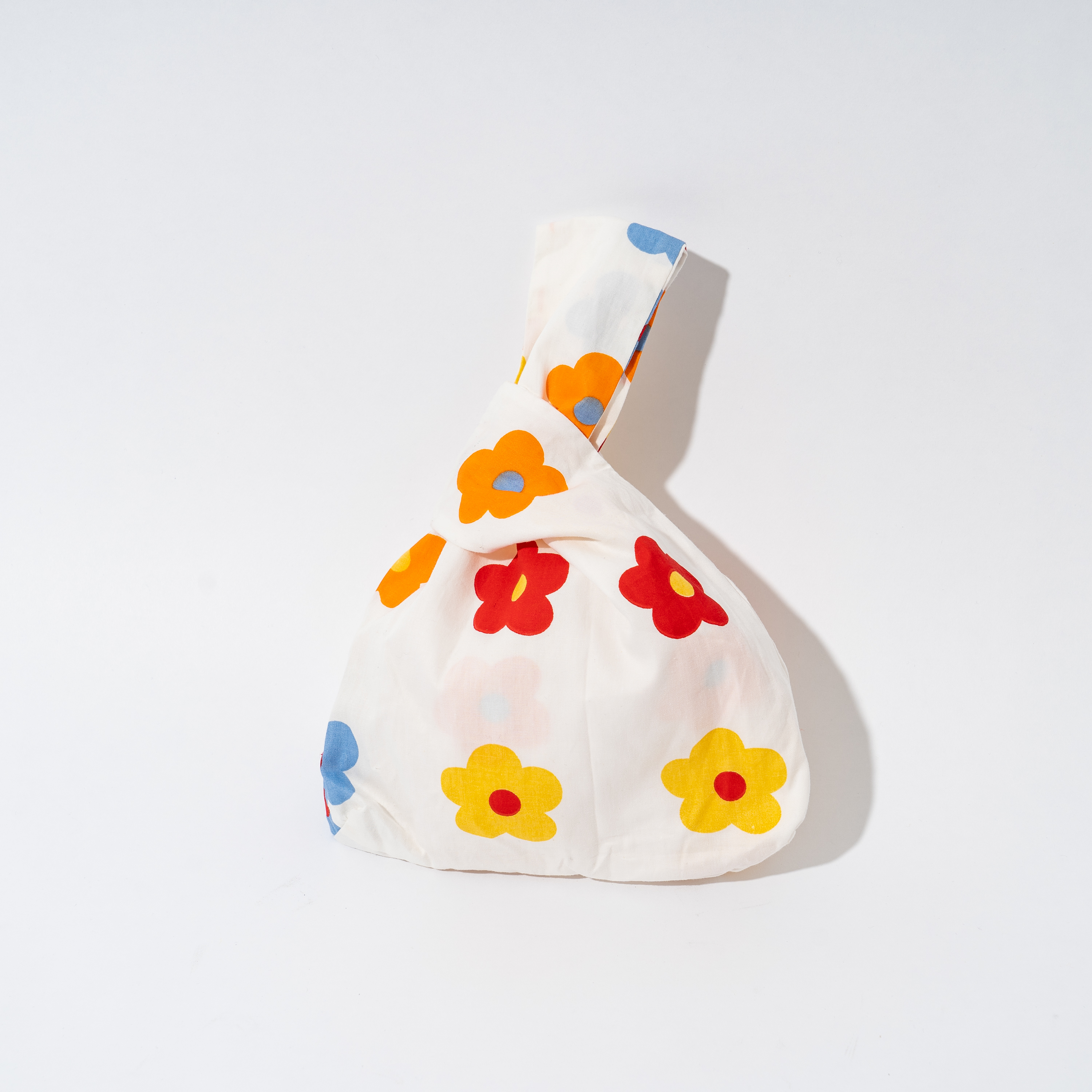 ちょっとしたお買い物用のバッグにおすすめなサイズ感のバッグ。年齢問わずお使いいただけるかわいいデザインです。持ち手の長さが異なることにより、バッグを閉じることが可能です。