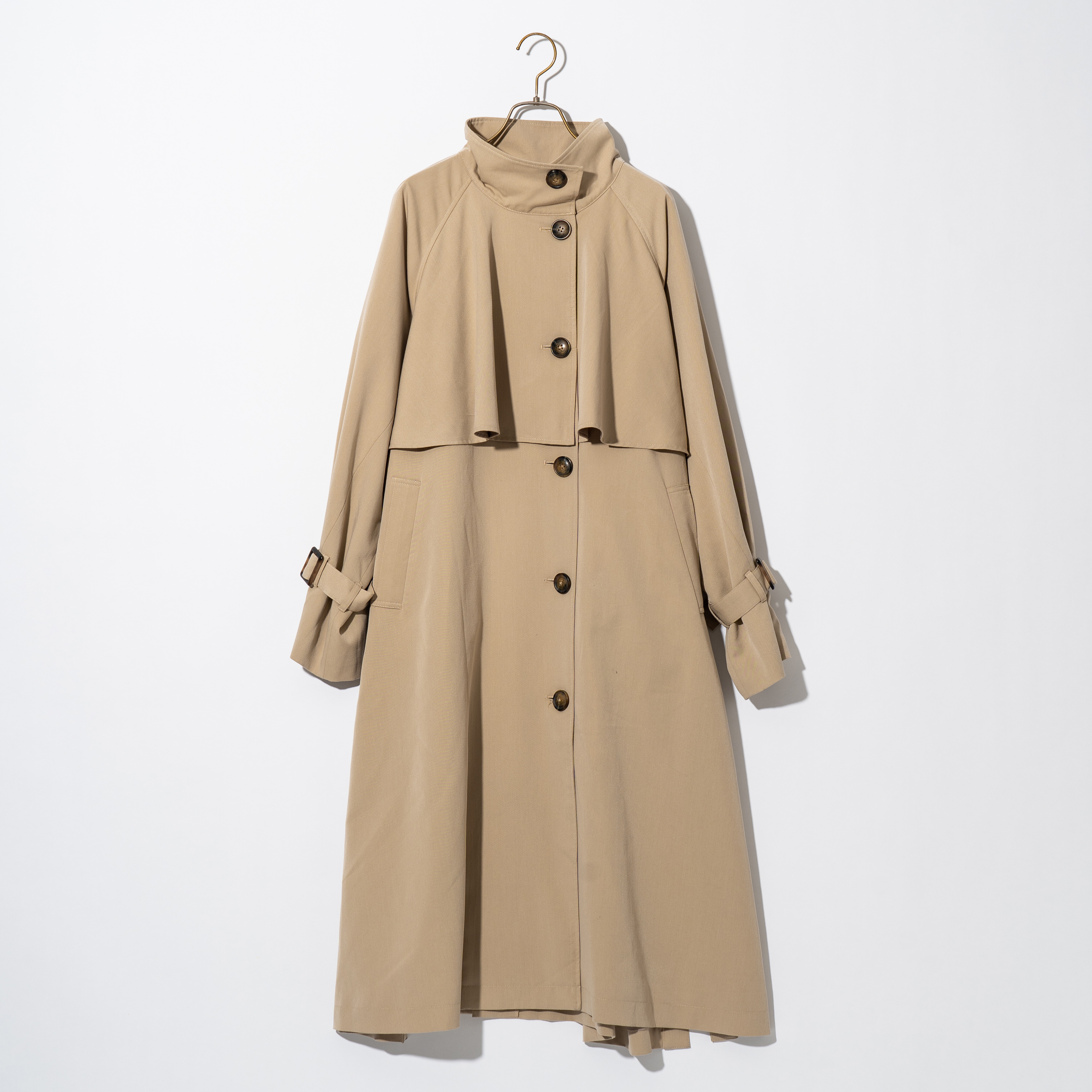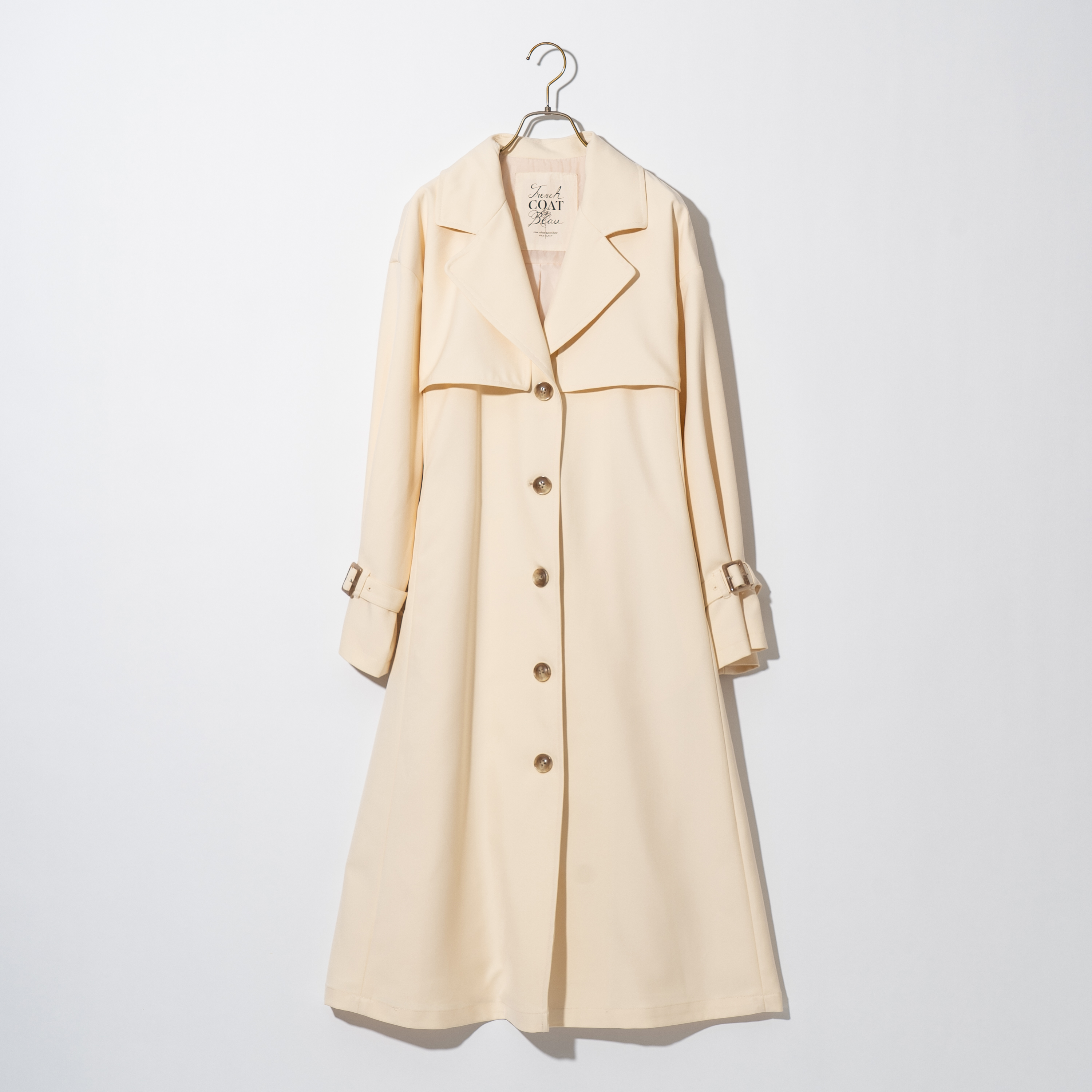 SMLの3サイズ展開で、身長に合わせてお好みの長さをお選びいただけるトレンチコート。フロント部分はシングルボタンデザインで、すっきりとした印象に加え上品さを演出してくれます。後ろのひらっとしたデザインとワンピース風にも見えるシルエットは、ナイスクラップらしい他にはないデザインです。