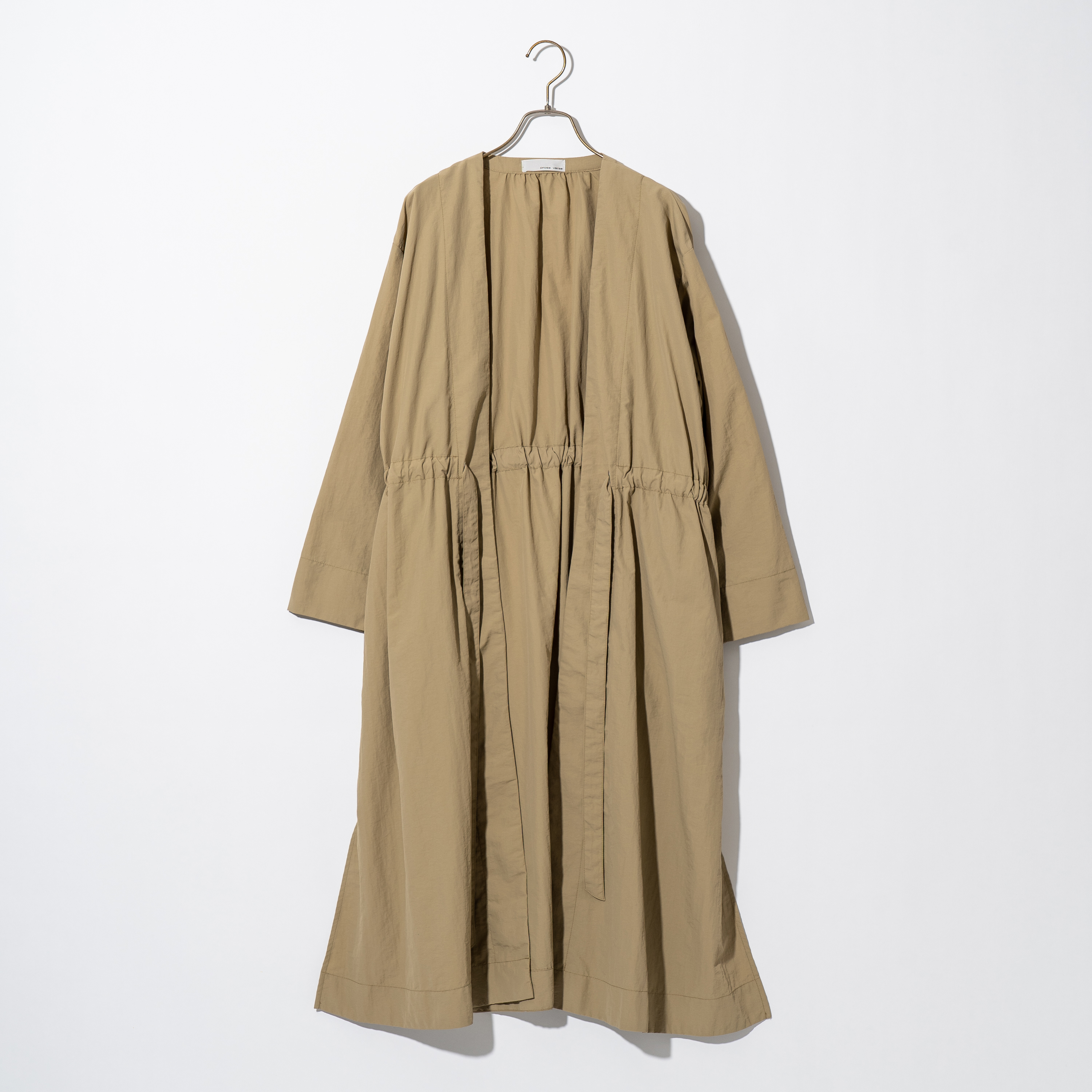 撥水加工をプラスした雨の日もオシャレを楽しめる機能性抜群の万能ロングコート。ウエストはドロストデザインになっているので、腰回りをスッキリ見せてくれスタイルアップ効果も抜群。深めのサイドスリットは程良い抜け感もあり、ラフに羽織ってもサマになる1着です。