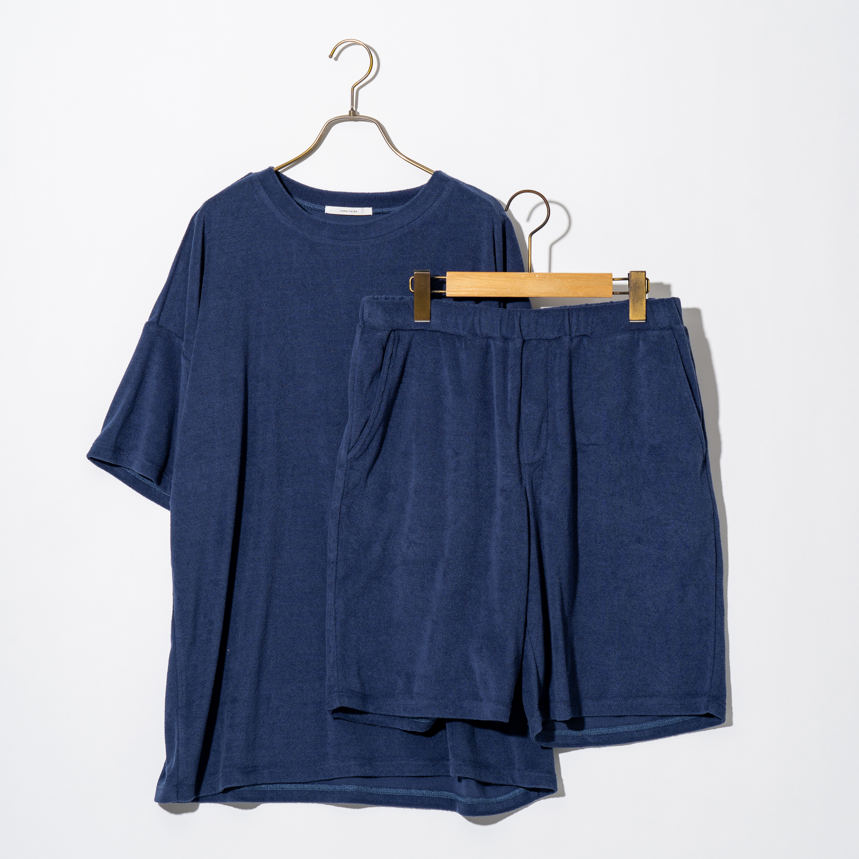 パイル素材で柔らかい着心地のメンズのルームウェア。着やすいシンプルなデザインです。ゆったりとしたTシャツは抜け感もでるので、部屋着でもかっこよく着て頂けます。パジャマ型が苦手な方にも◎
