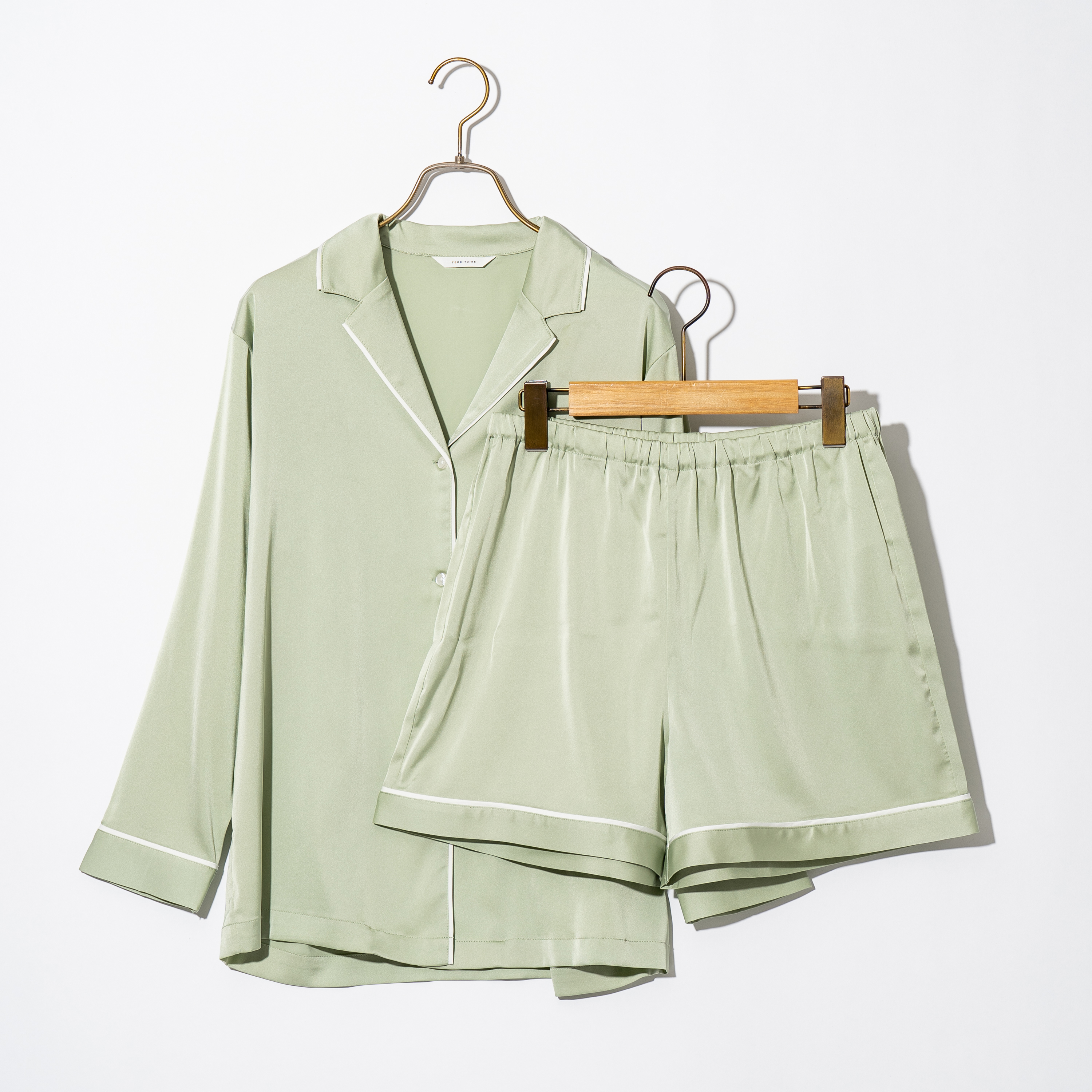 シルクのような滑らかなサテン素材で、さらっと着れるストレスフリーな着心地のパジャマです。ラグジュアリー感のある上質なサテンの光沢が、大人な女性の印象に。シンプルで誰でも着やすいのでギフトにもおすすめです。