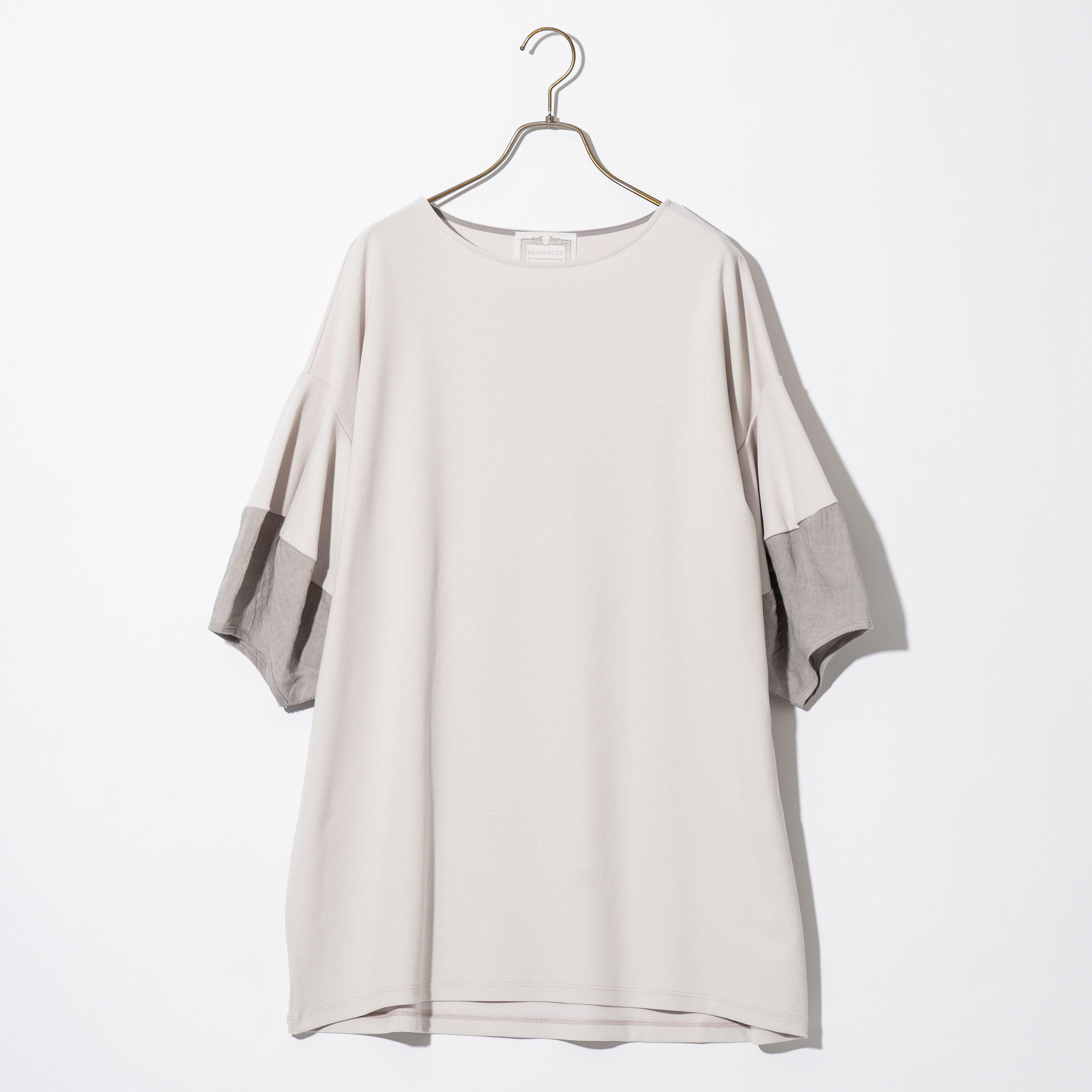 ふんわりした袖のフォルムと、ゆるめのシルエットが柔らかく優しい雰囲気のチュニックです。柔らかく肌触りの良い素材を使用し、着心地よく手洗い可能なところも嬉しいポイント。家で過ごす時にももちょっとしたお出かけにもシーンを選ばずに着られるアイテムです。