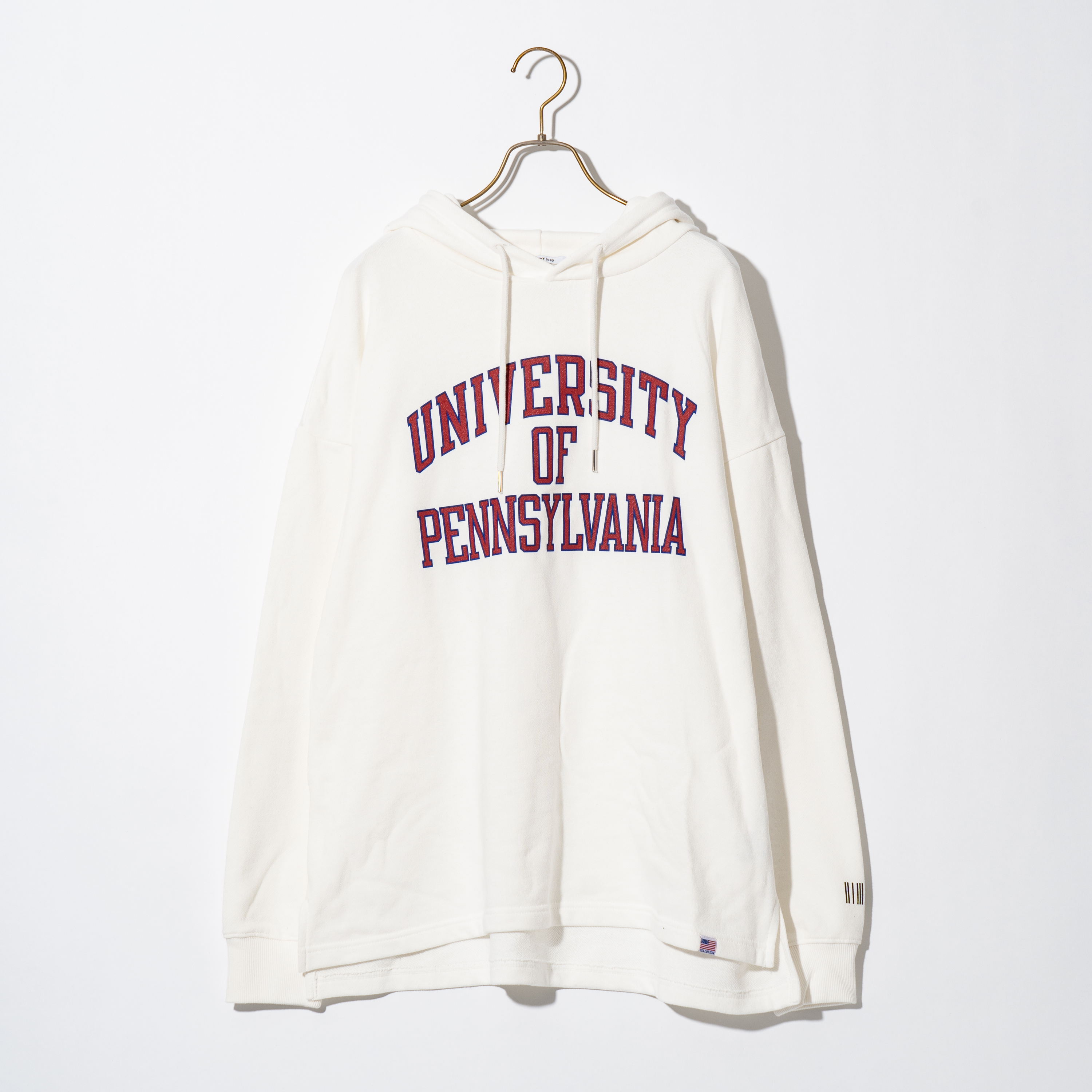トレンドでもあるカレッジロゴデザインのパーカーです。ユニセックスで着用頂けるので、ルーズなシルエット着たい女性の方にもおすすめです。カレッジロゴデザインはレディースでも販売しているので、カップルコーディネートにも。