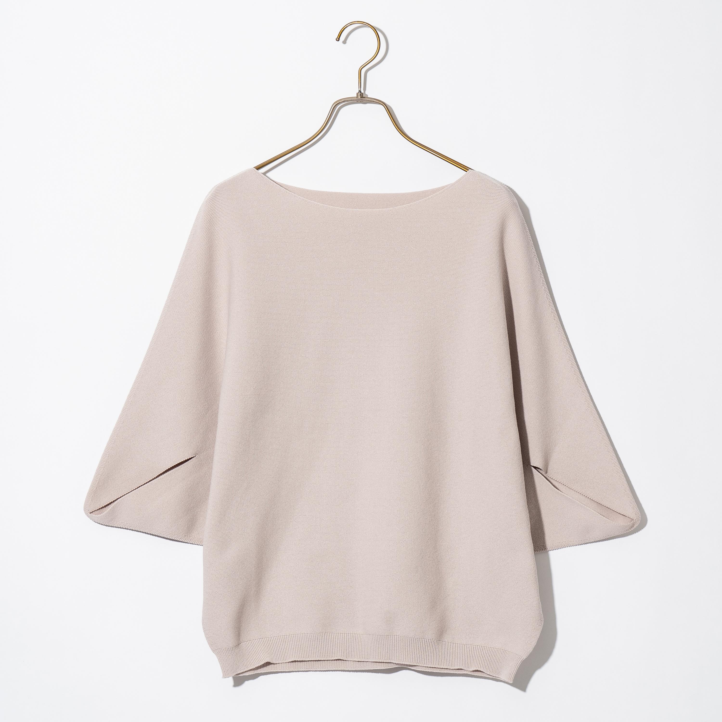 人気のポンチョ型のシルエットをホールガーメントで表現したプルオーバー。 着るとゆるりとドレープがあり、より女性らしい印象に仕上げてくれます。ニット素材ながら軽やかな着用感と伸縮性で、Tシャツ感覚でお使い頂けます。