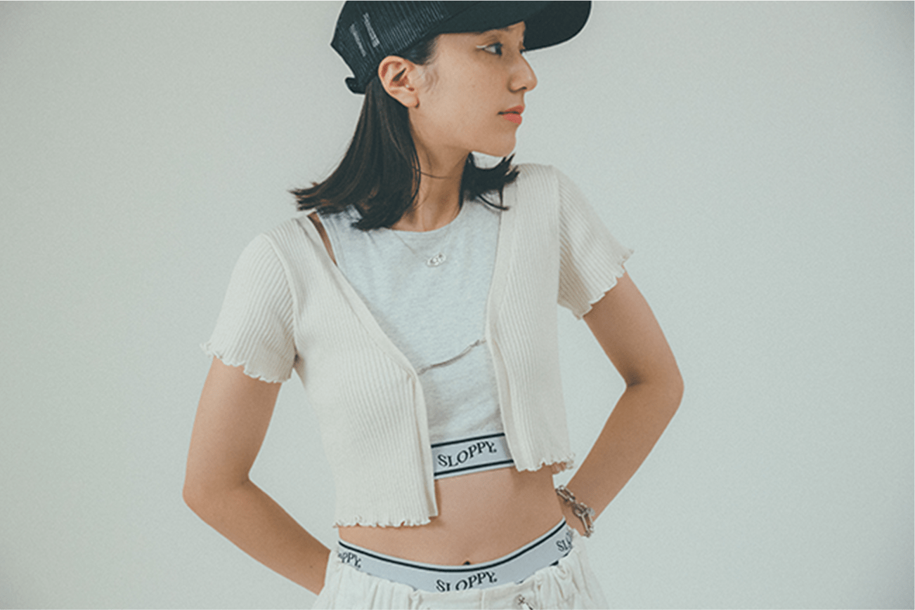Y2Kはよく聞くワードで、短丈のトップスでヘソだしスタイルで90年代を意識しました。