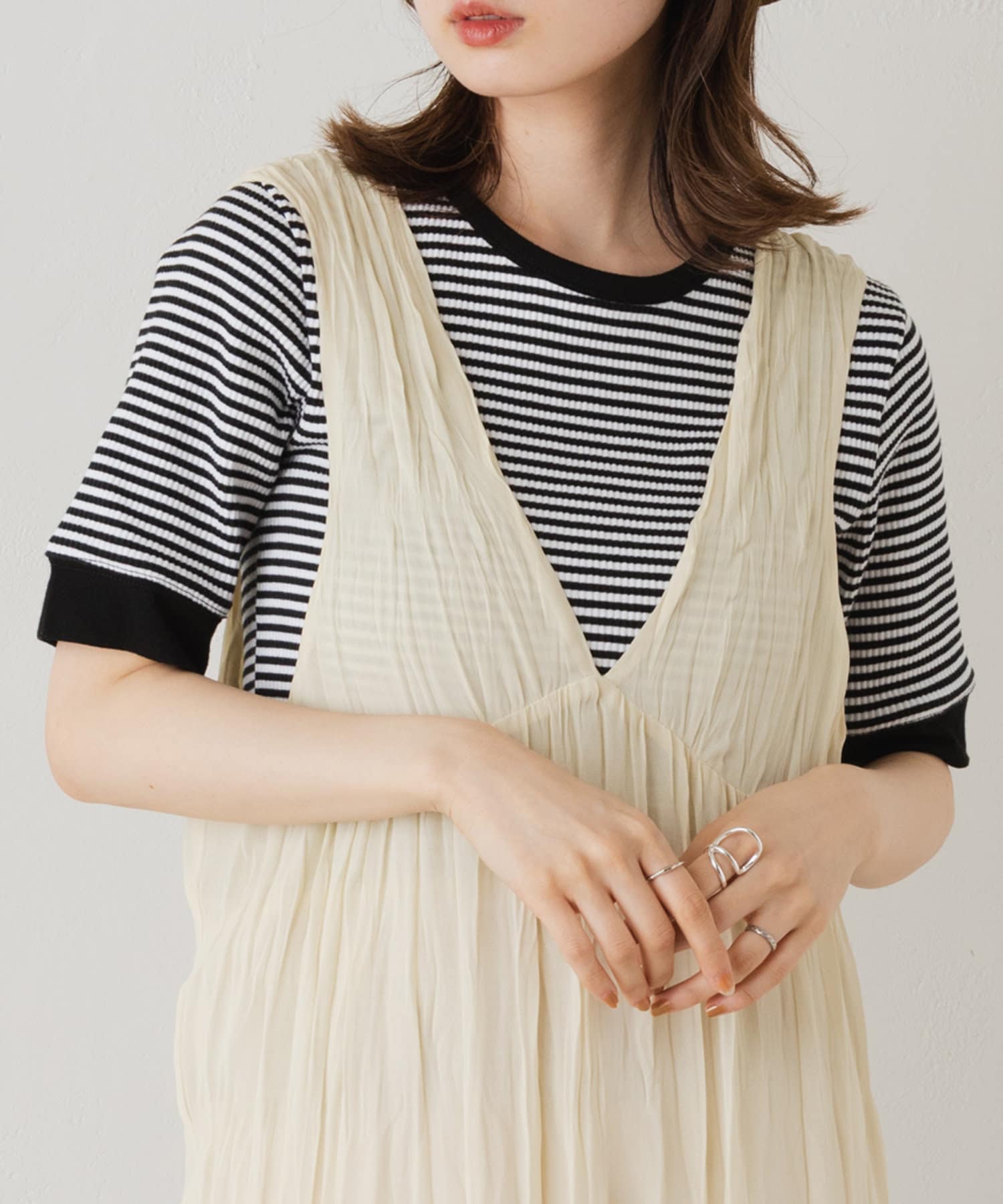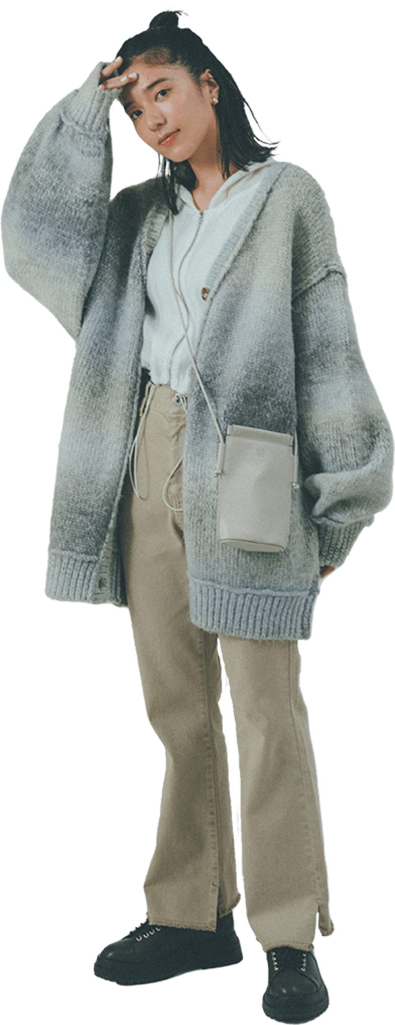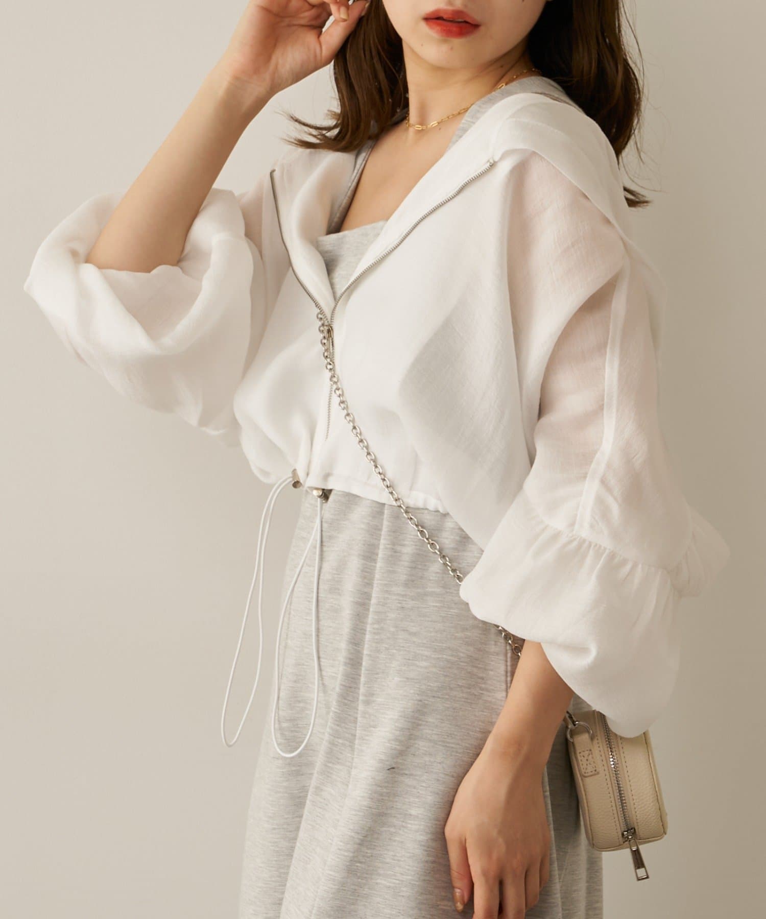 ビックシルエットを着る時はインナーを短いものにしてスタイルアップ。