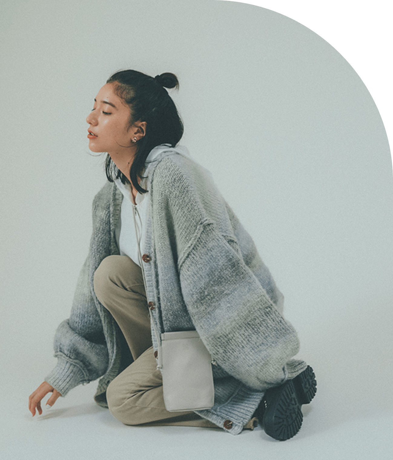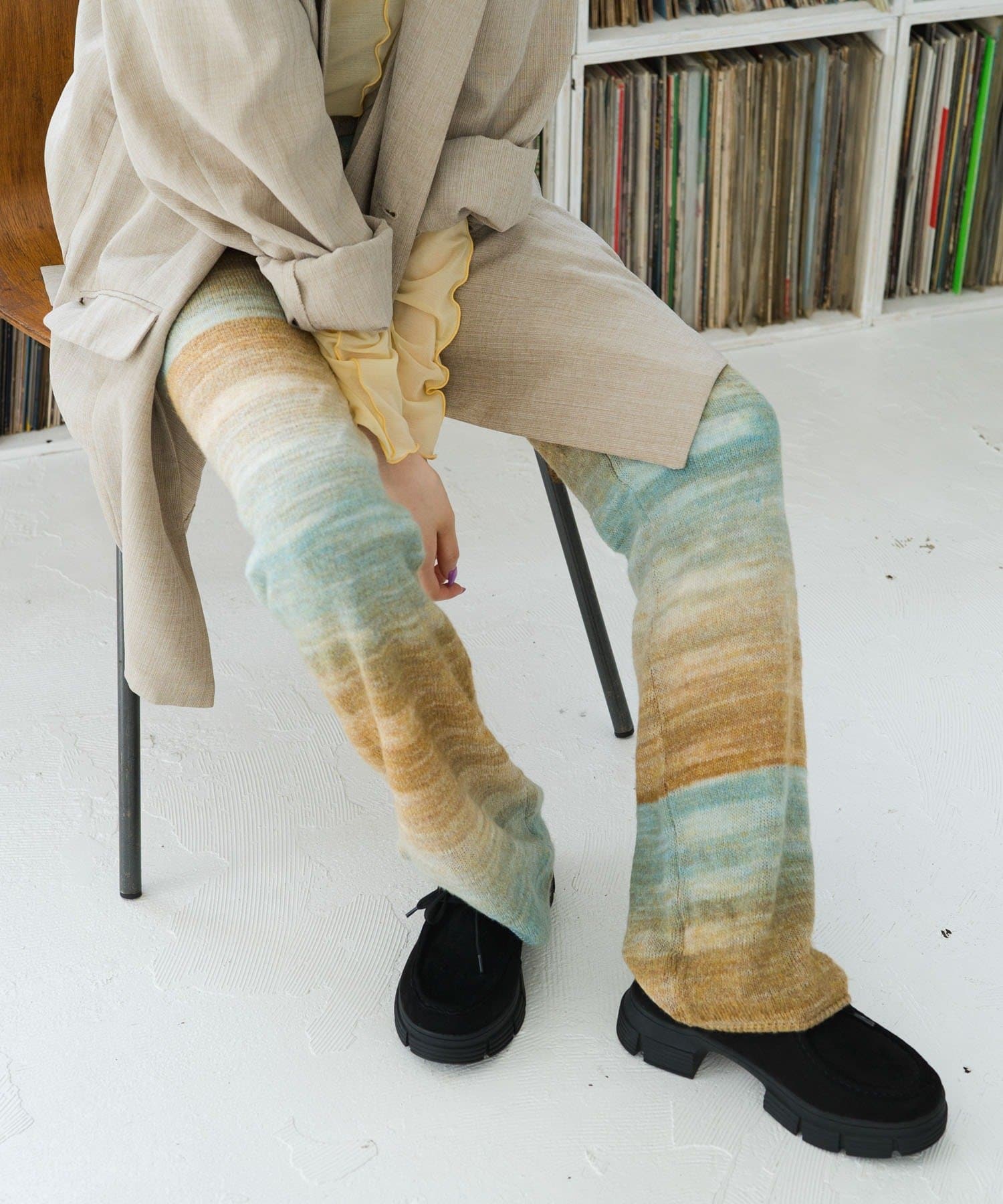 ニットにニットを合わせる素材あわせのスタイリングが今の気分。