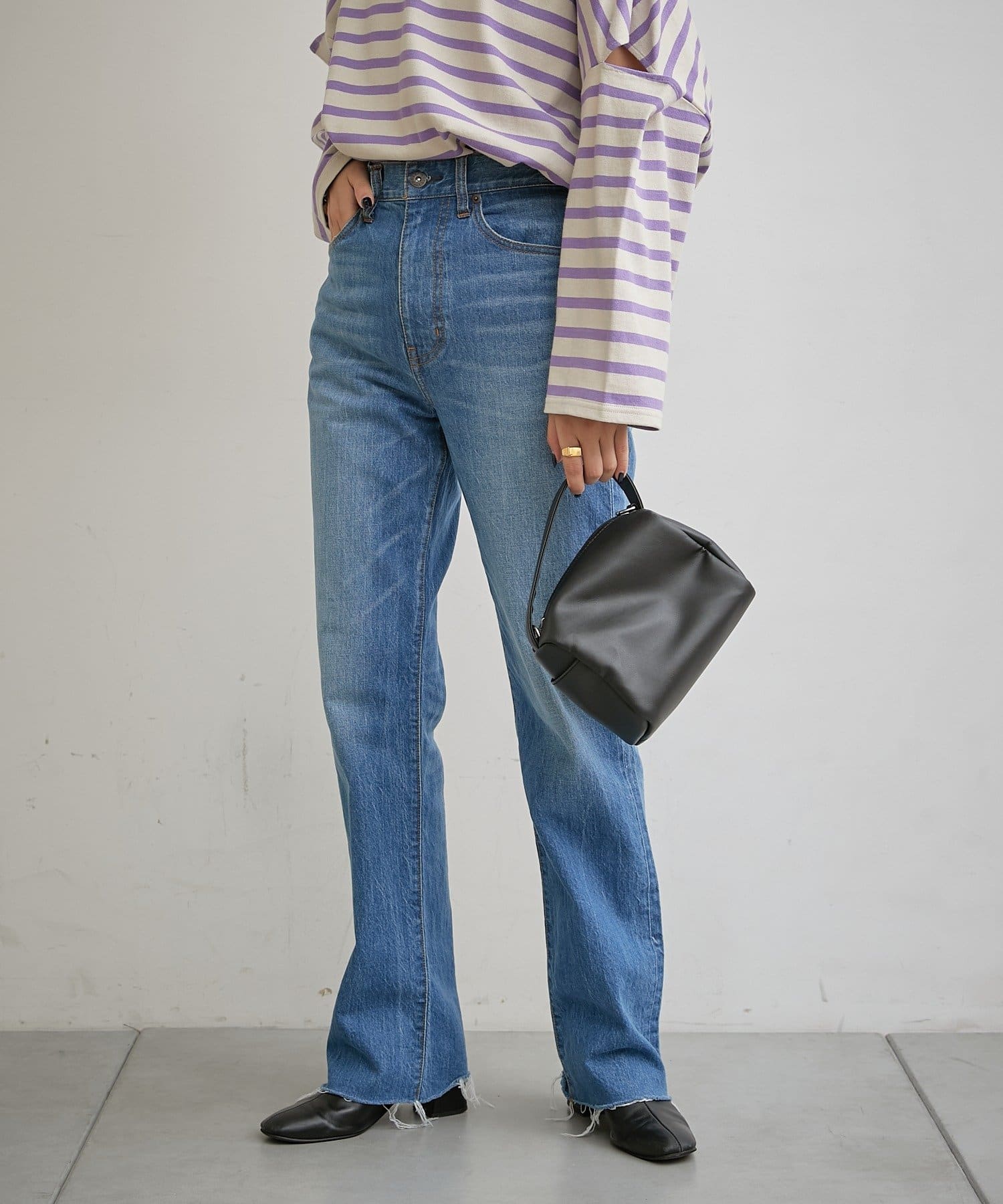ハイウエストのボトムとコーディネートするとバランスよくおすすめです。