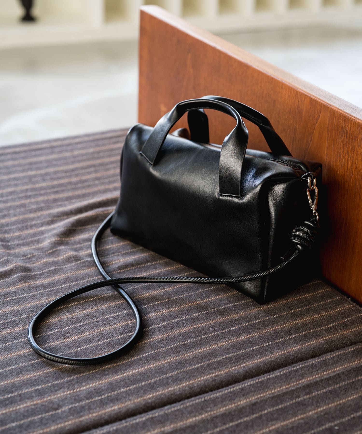 カジュアルになりすぎないようにレザーの小物をプラスしました。