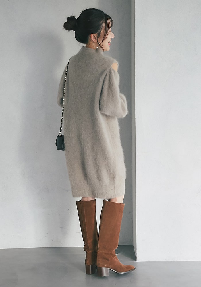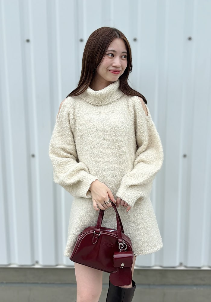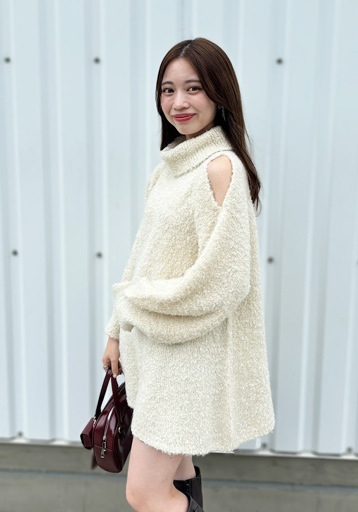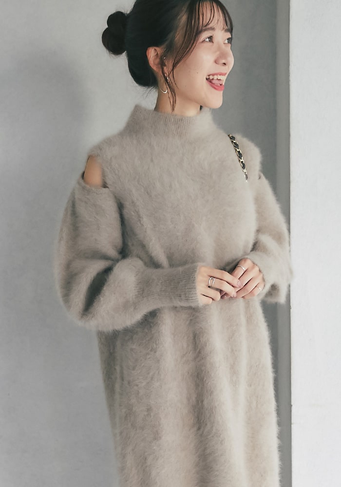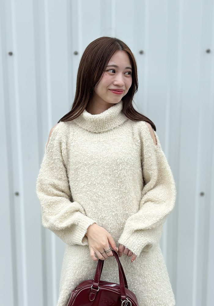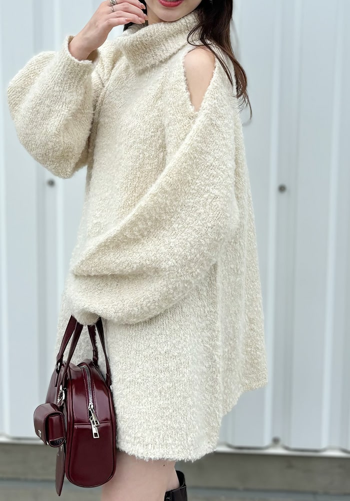 肩スリットタートルニットワンピース