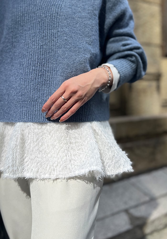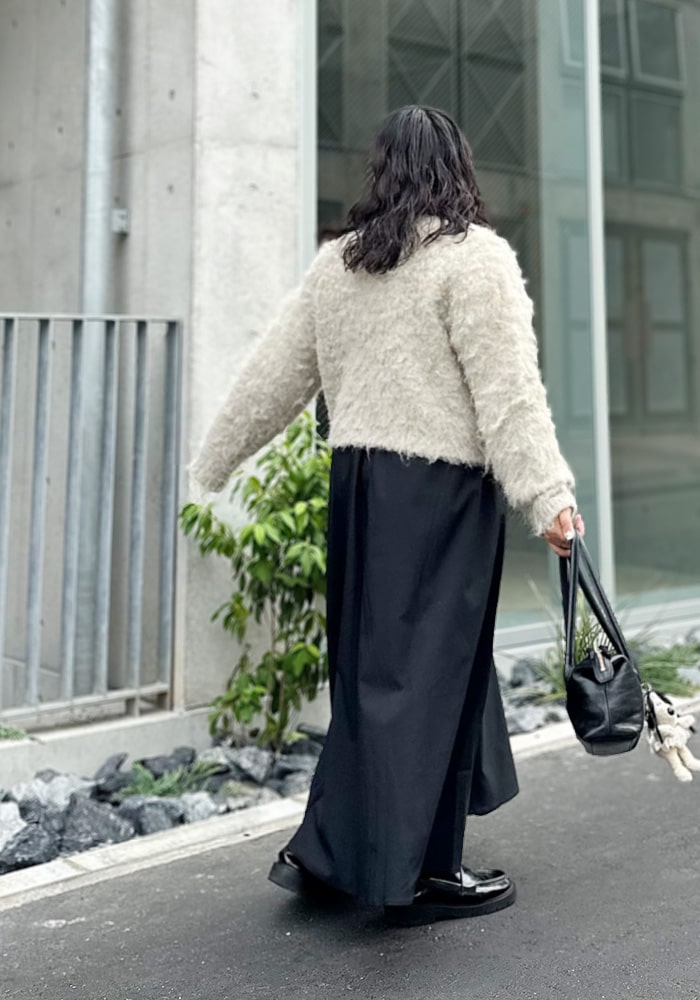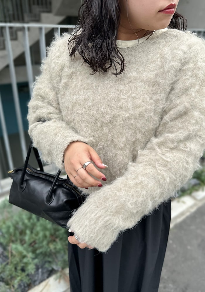 上品なシャギーにほんのりラメ感をプラスして、「デイリーにも特別な日にも手に取りたくなる」そんな大人のモテニットアンサンブルを作りました。秋冬に気になる着膨れをしないシルエットにこだわり、単品でも使える着回し力抜群のアイテムです◎これからのクリスマスシーズンに向けて、是非手に取っていただけたら嬉しいです!