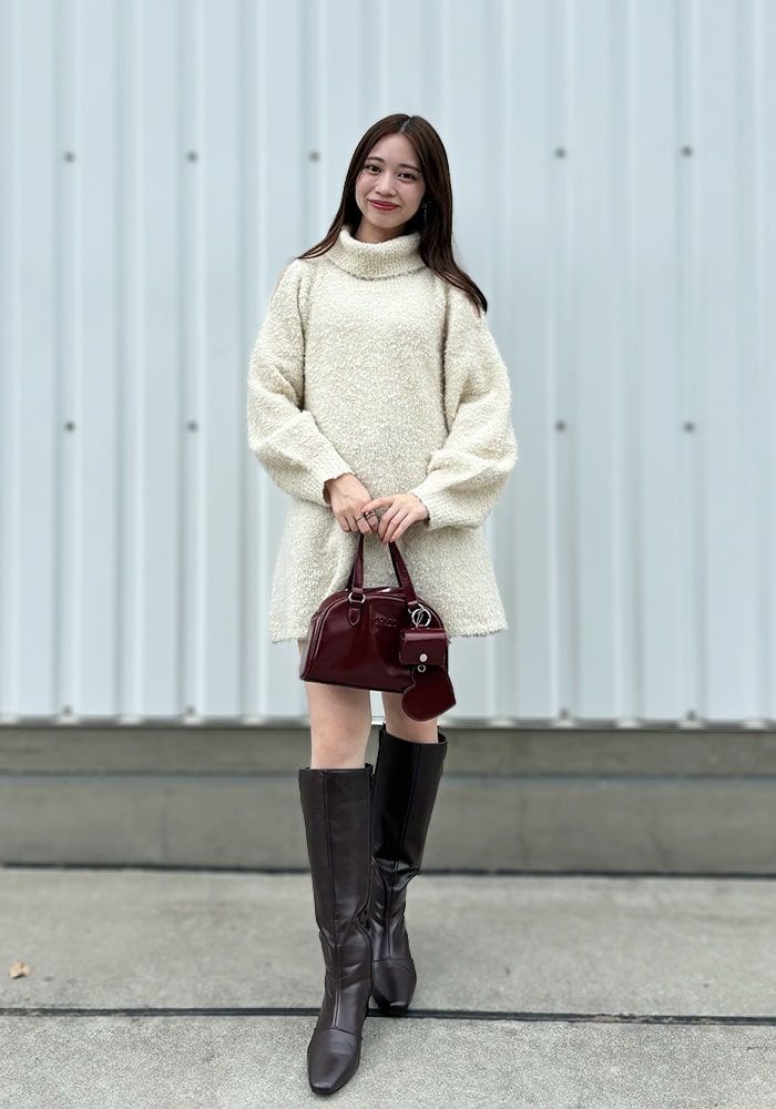 冬の本命デートワンピース!昨年即完したワンピースを「もっと賢く・あざとくモテる」をテーマに掲げてアップデートしました。1番のポイントは着丈を短くしたこと。上品な印象になるように膝が見え隠れする着丈にこだわって調整しました。