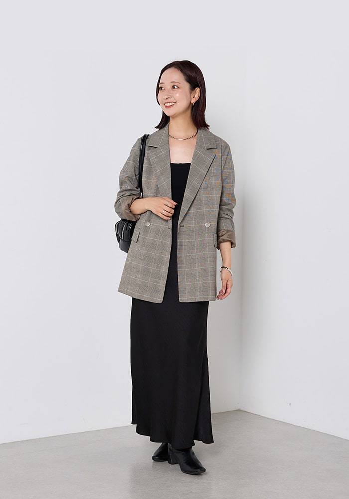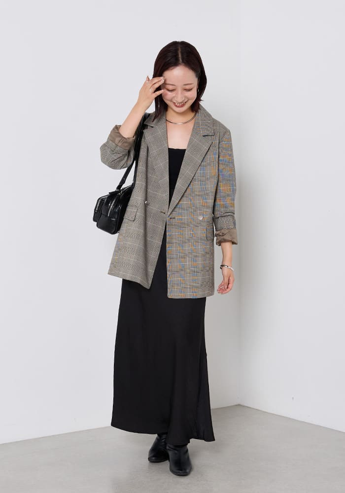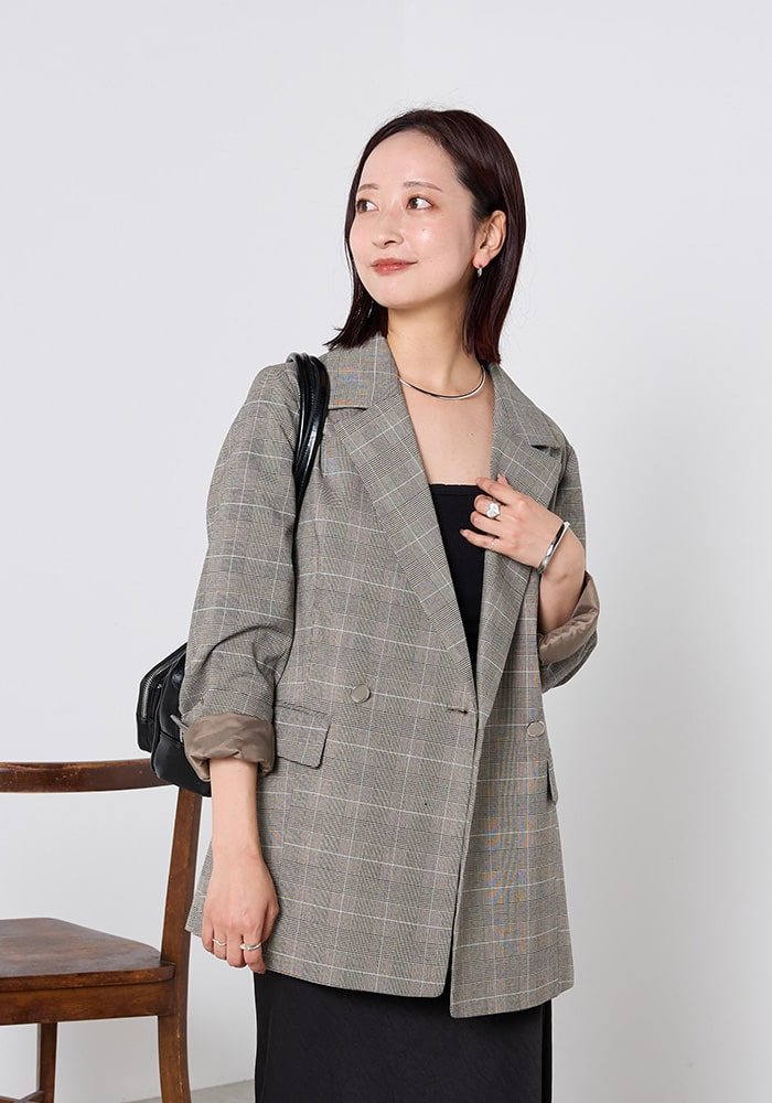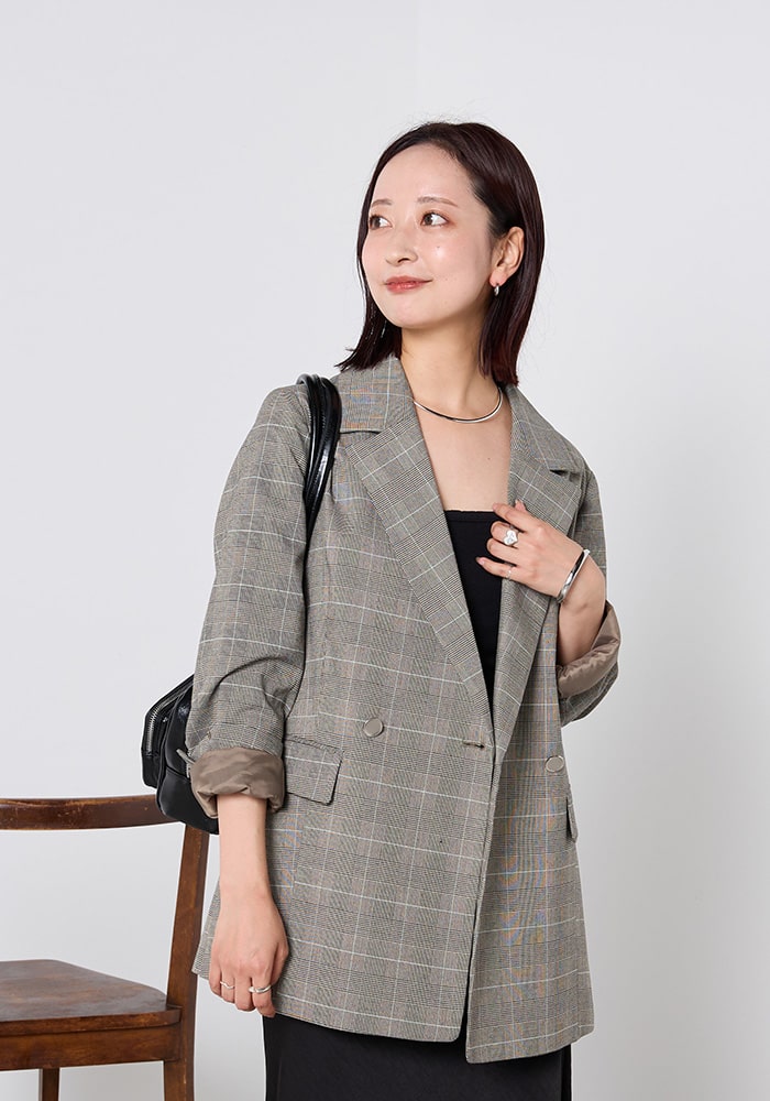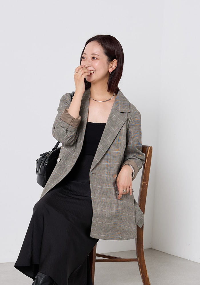 COLLAGE GALLARDAGALANTEで毎シーズン人気のジャケットをカラー別注でプロデュースしました。羽織るだけでポイントになるチェック柄で、オンでもオフでも使えるように大人なカラーの配色にしています。たくさんの大人女子の皆さんに気に入ってもらえると嬉しいです。