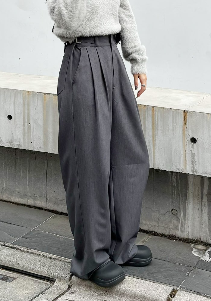自分のウエストに合わせてサイドのベルトで調節ができる美脚シルエットのグルカパンツ。お好みでハイウエストやローウエストにもできたり、インした時に映えるウエストのデザインもポイントです。