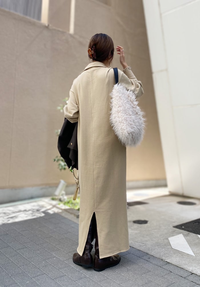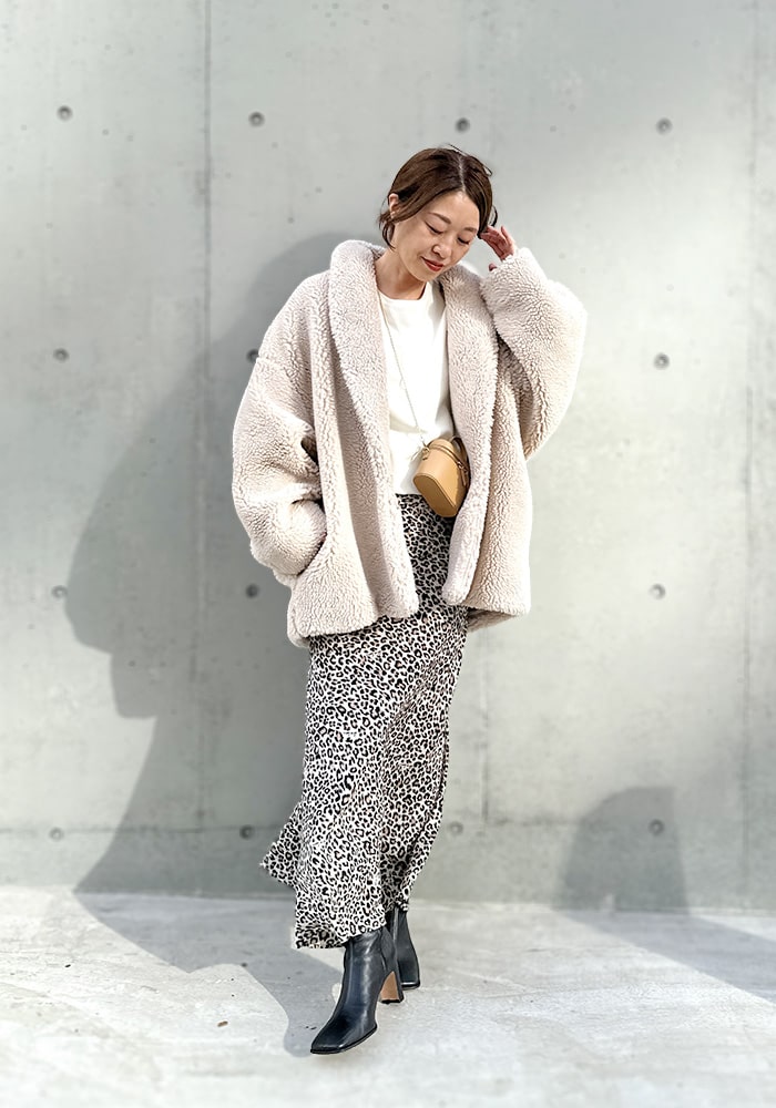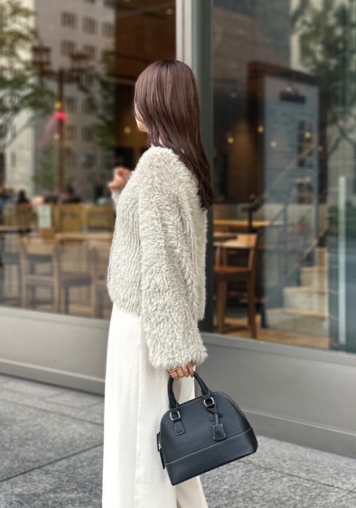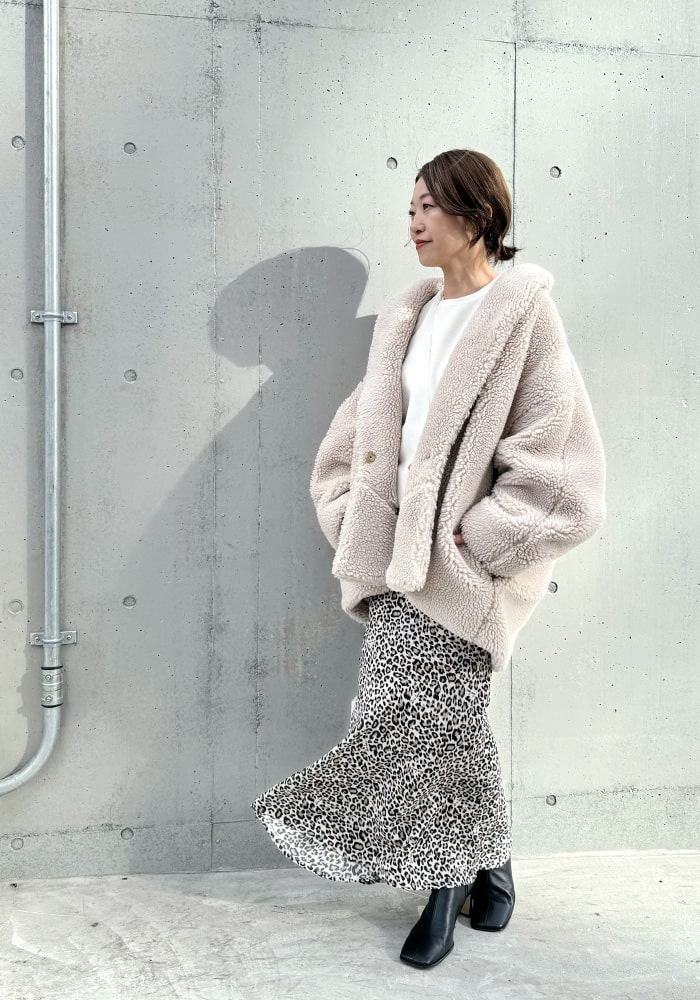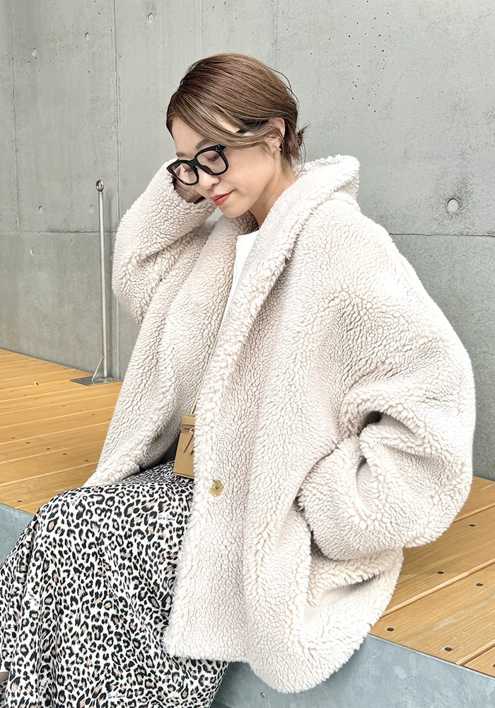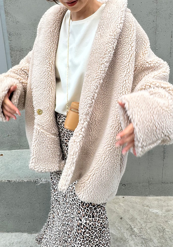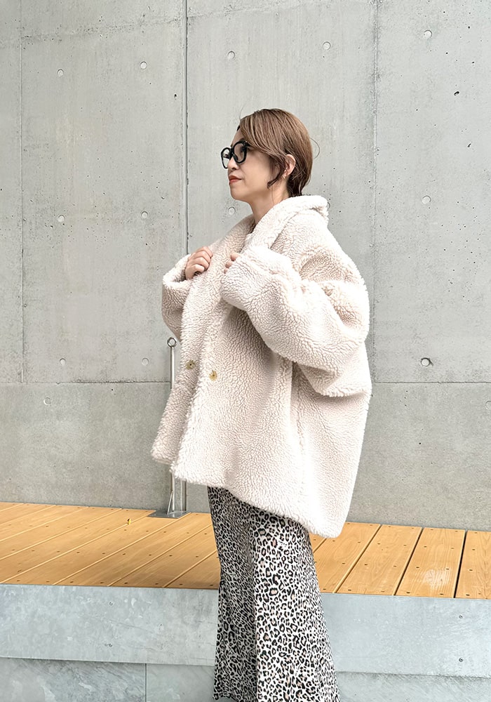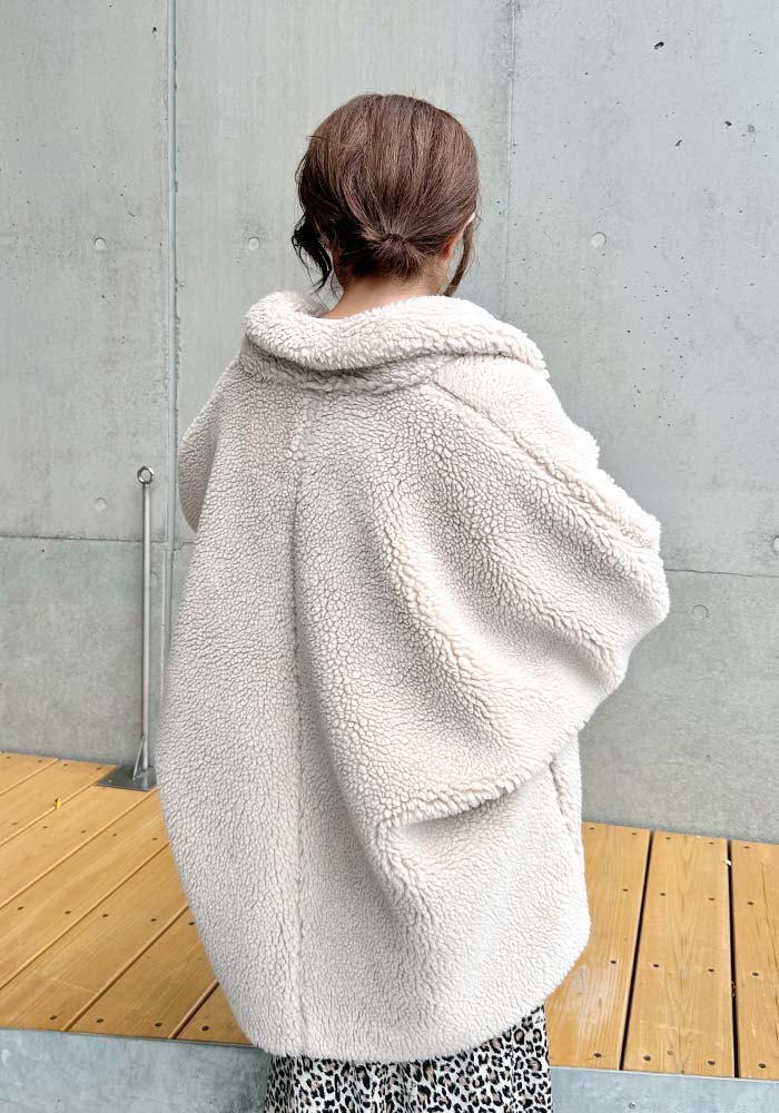 大人の女性に着ていただきたい、自然とこなれ感のでるボアコート。サッと羽織れてサマになるミドル丈です。絶妙なカラー展開と、ボリューム感が作る上品なシルエットが魅力的なアウターです。