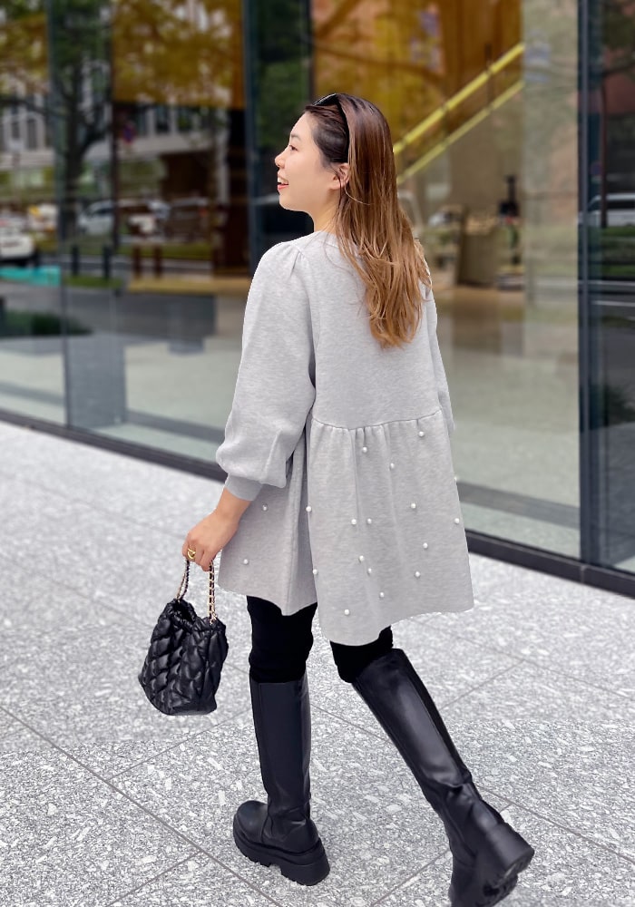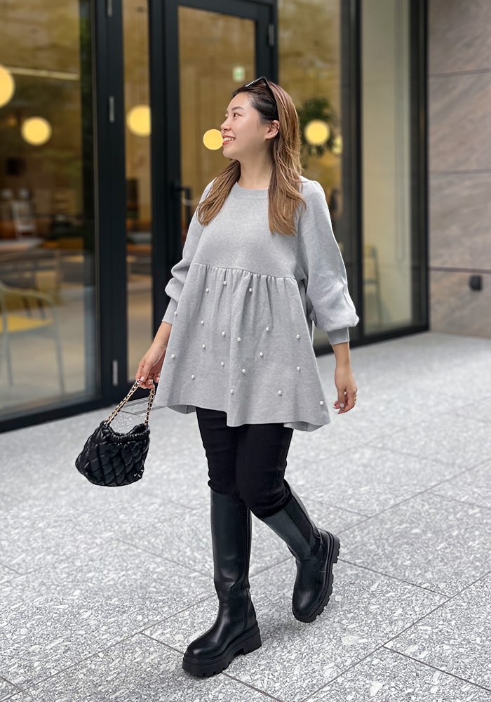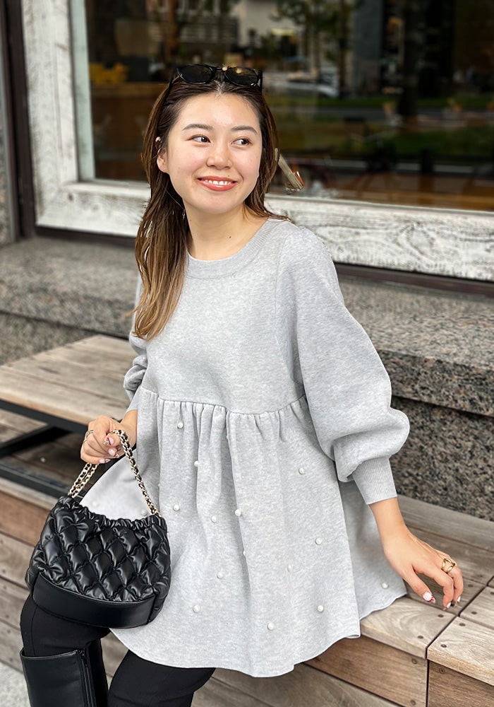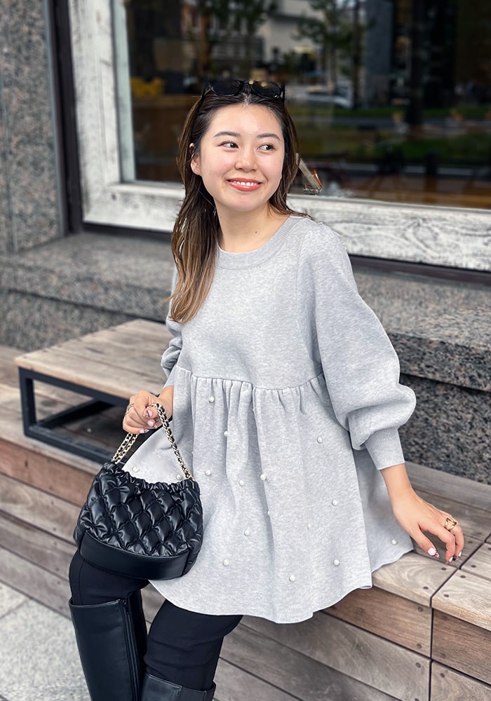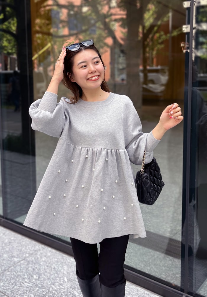 パールペプラムニット