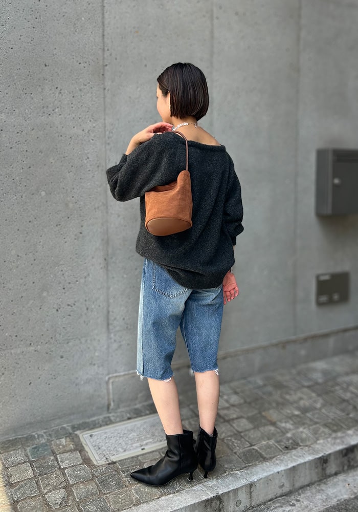 普段のお出掛けから特別なシーンまで幅広く使えるデザインと、スタイリングに合わせて変えられる4way仕様にこだわって企画しました。日本製レザーを贅沢に使用したボリューム感のある巾着フォルムがお気に入りポイントです。