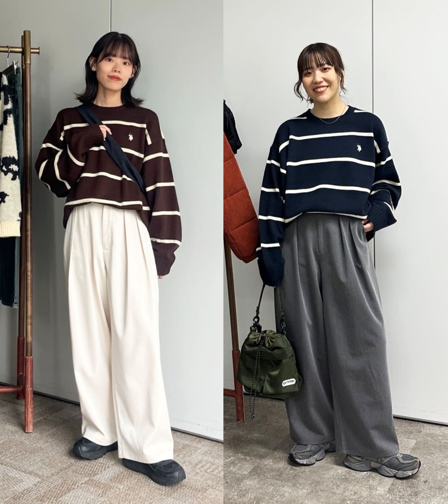 華奢なボーダーが可愛くて、カジュアルオフィスコーデにぴったりです。