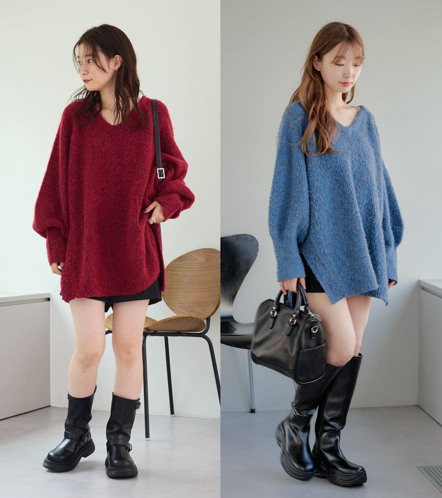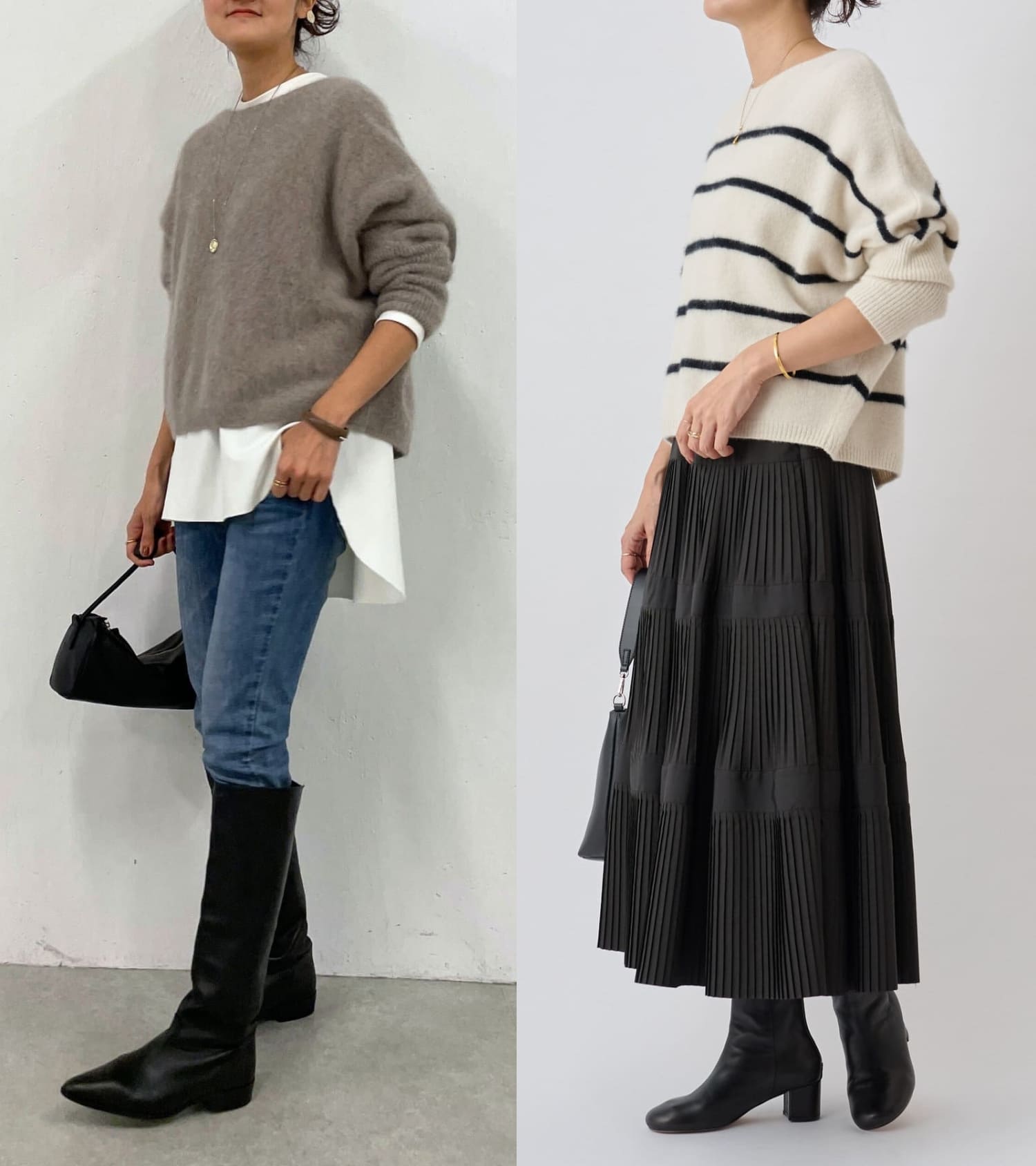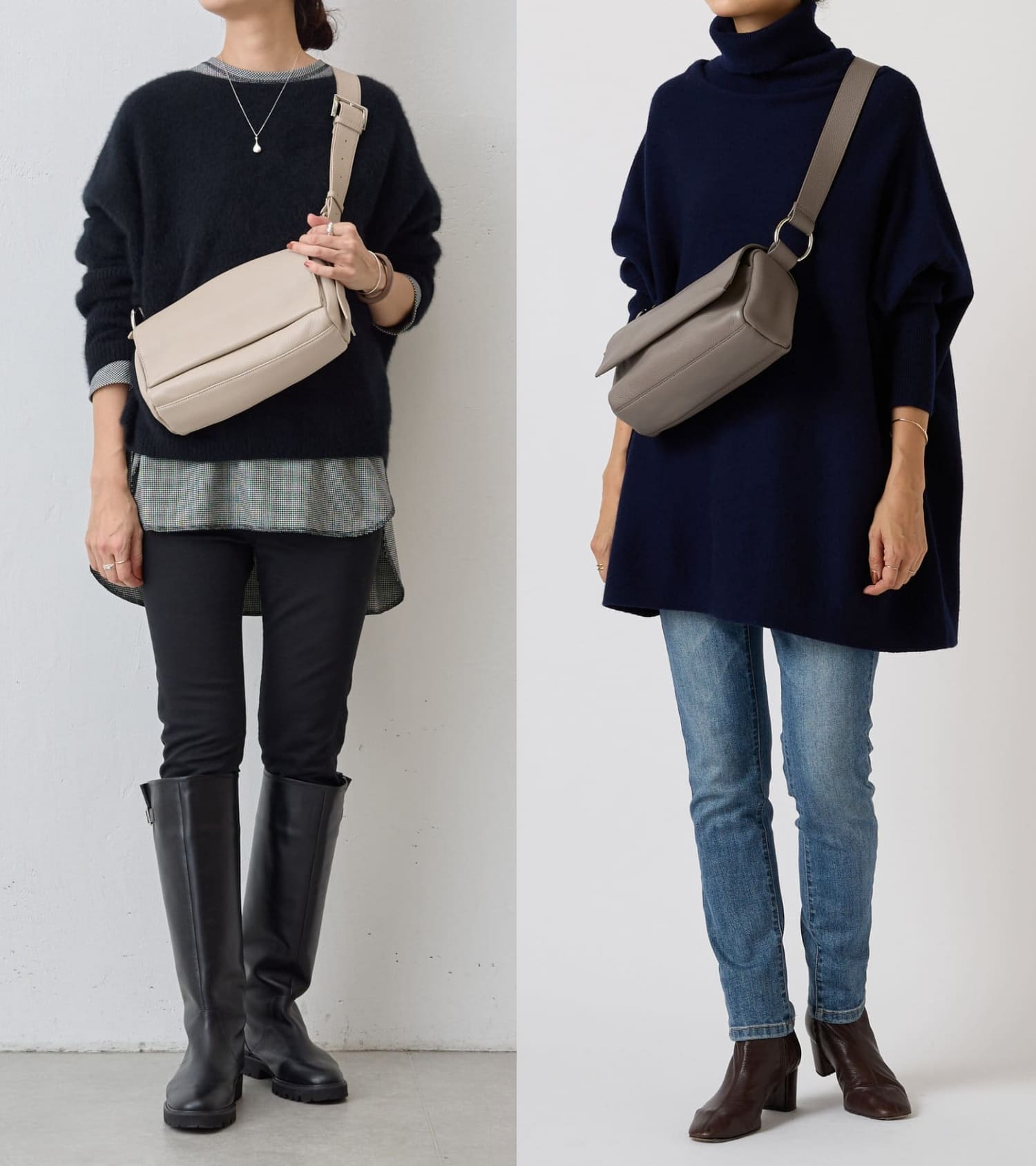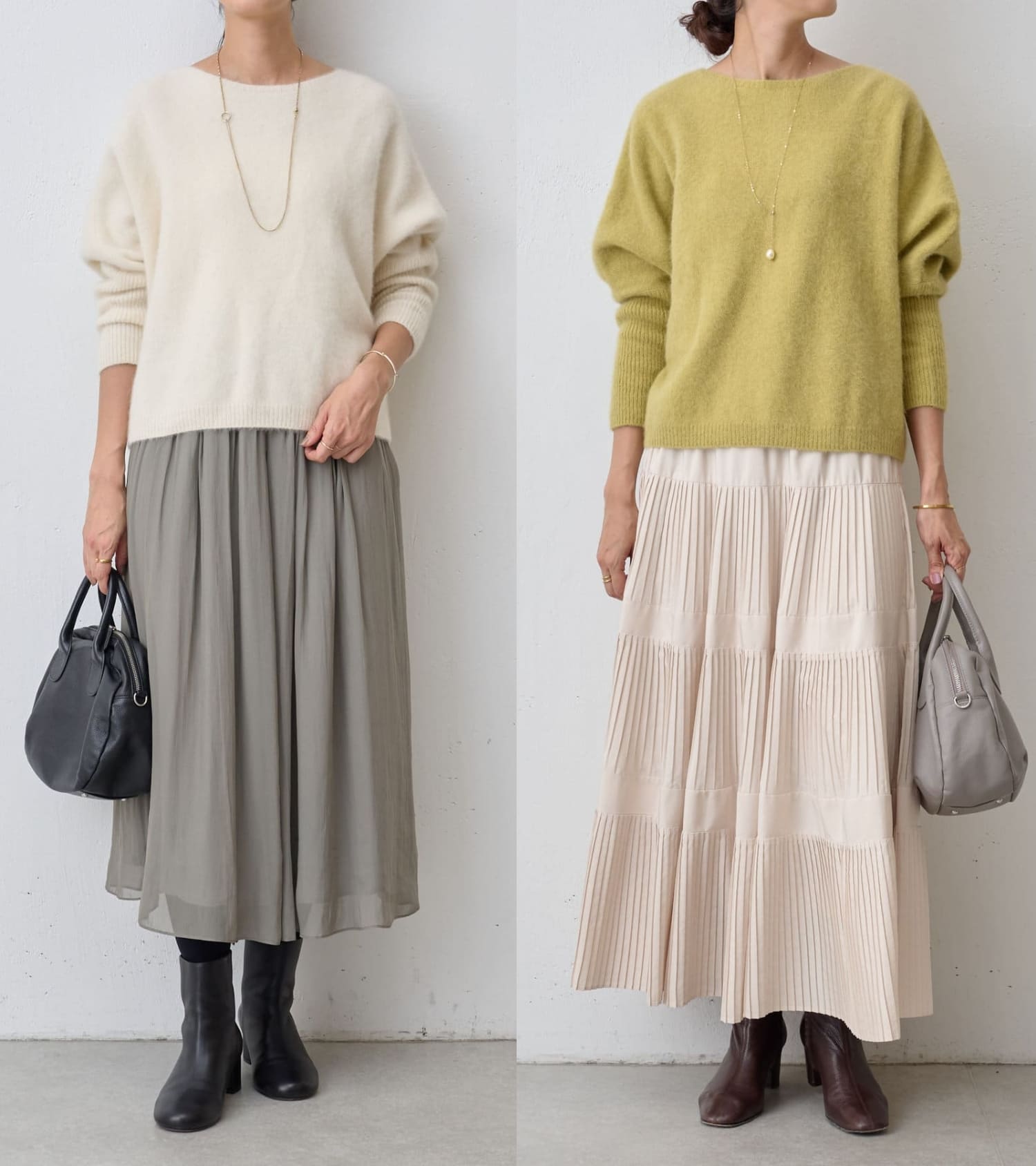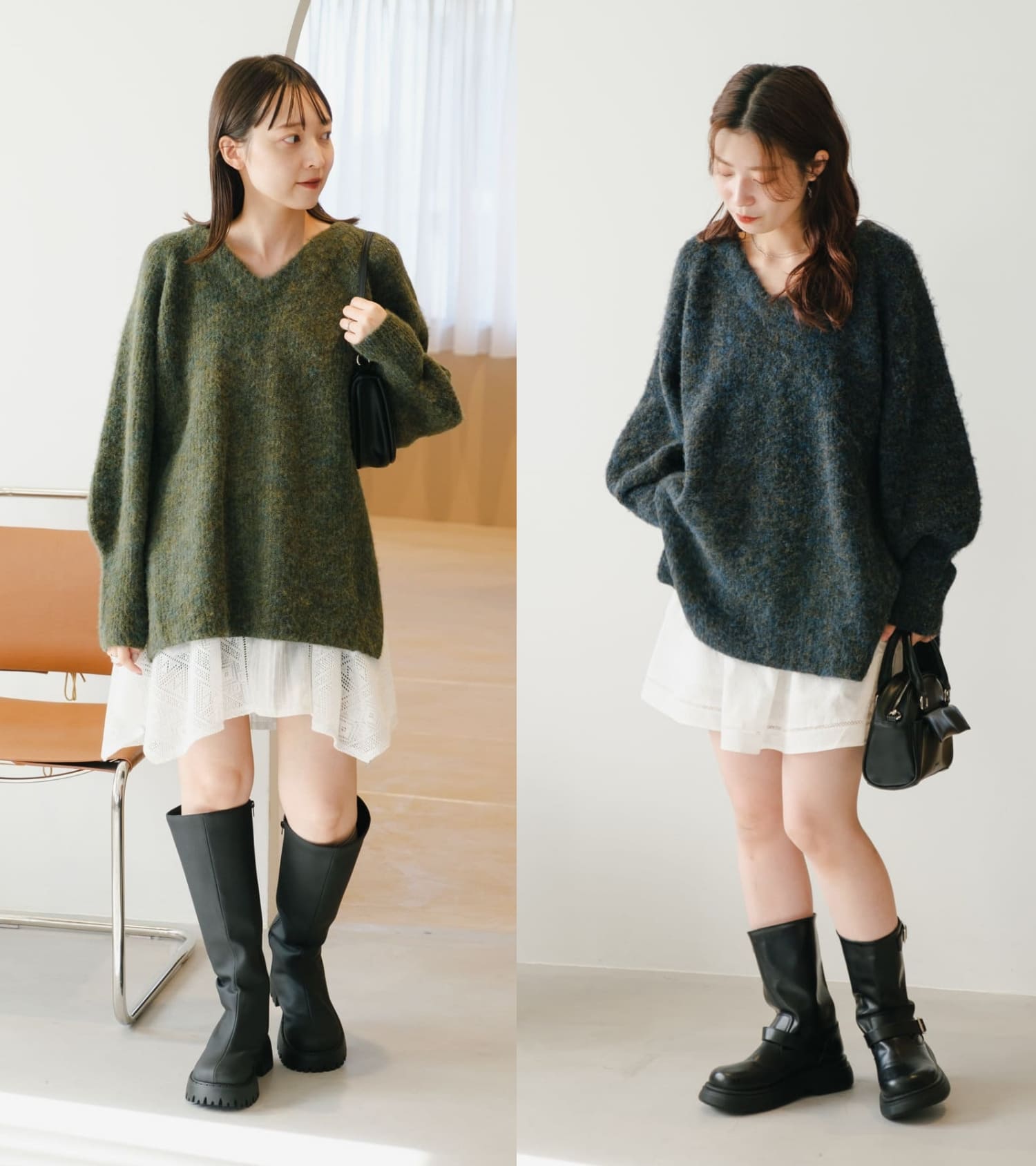 ニットは程よい厚みで着膨れの心配もなくドルマンスリーブなのでシルエットも拾いません。