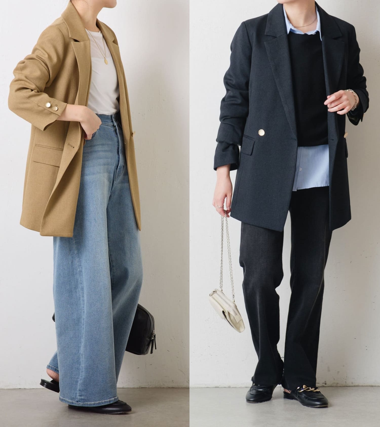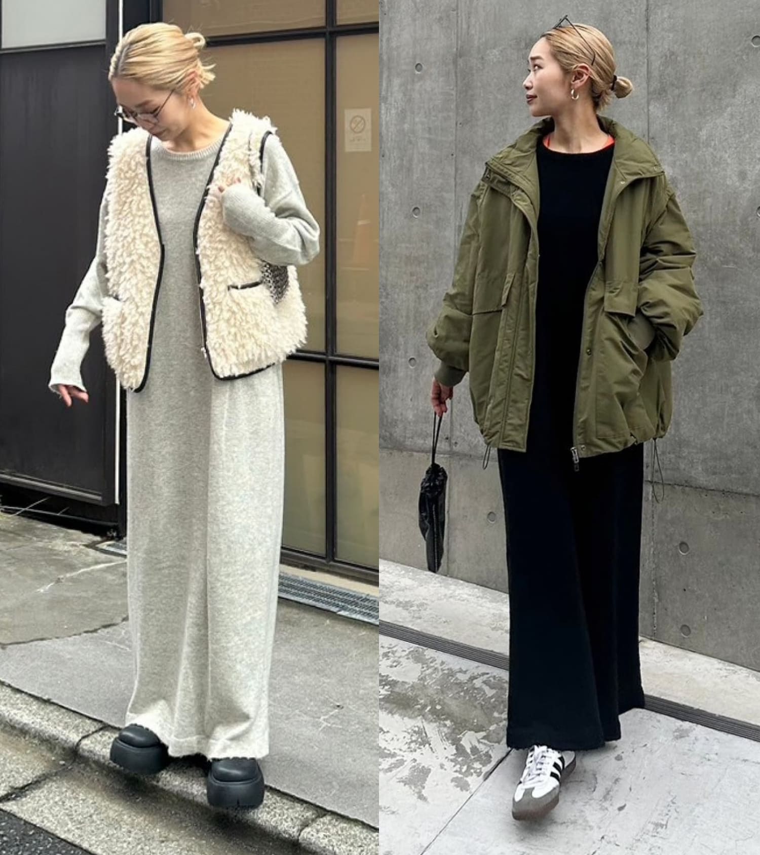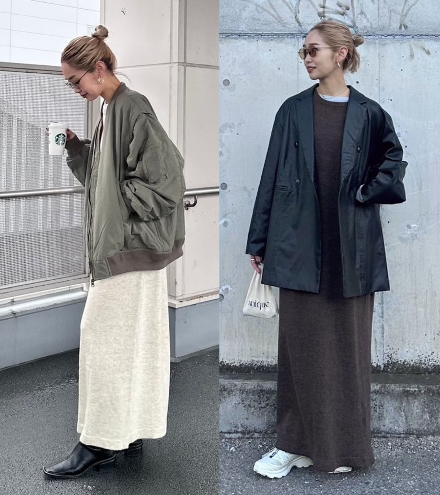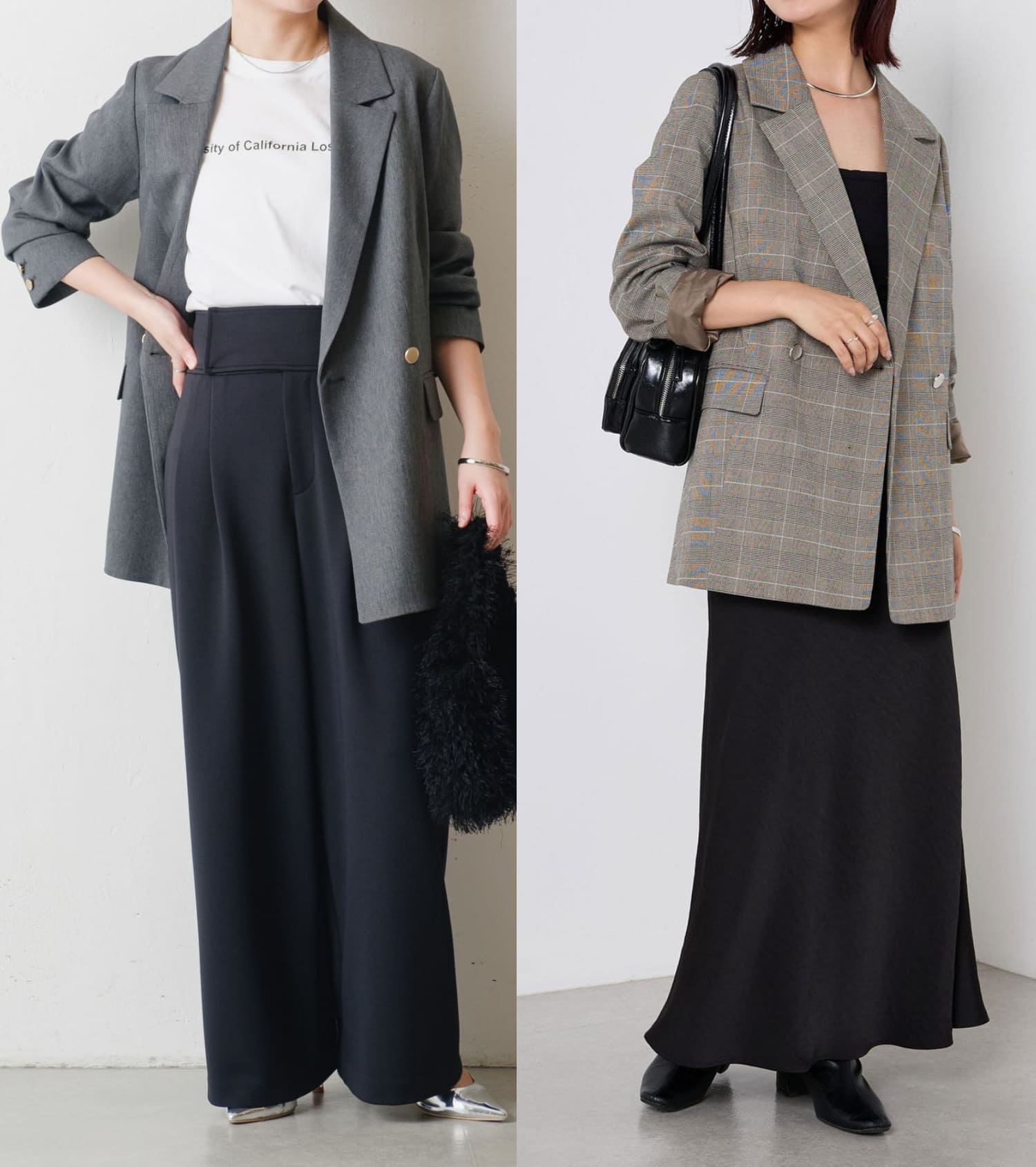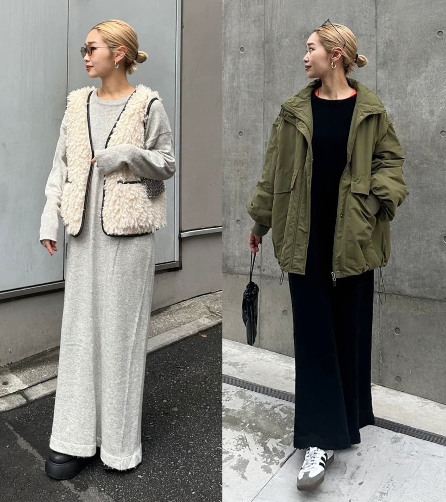 ワンパターンになりがちですが、ジャケットを変えたり、何か重ねたりするだけで色んなスタイリングできるのでひとつ持ってるといいです!