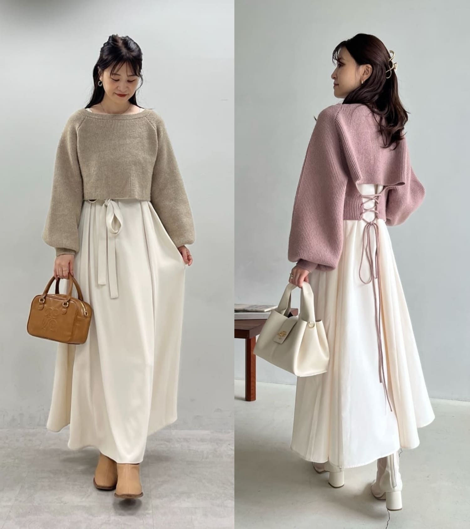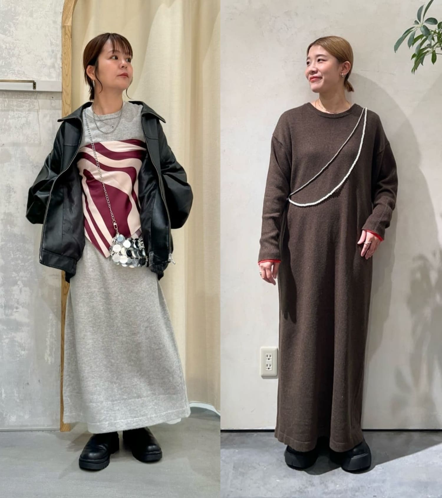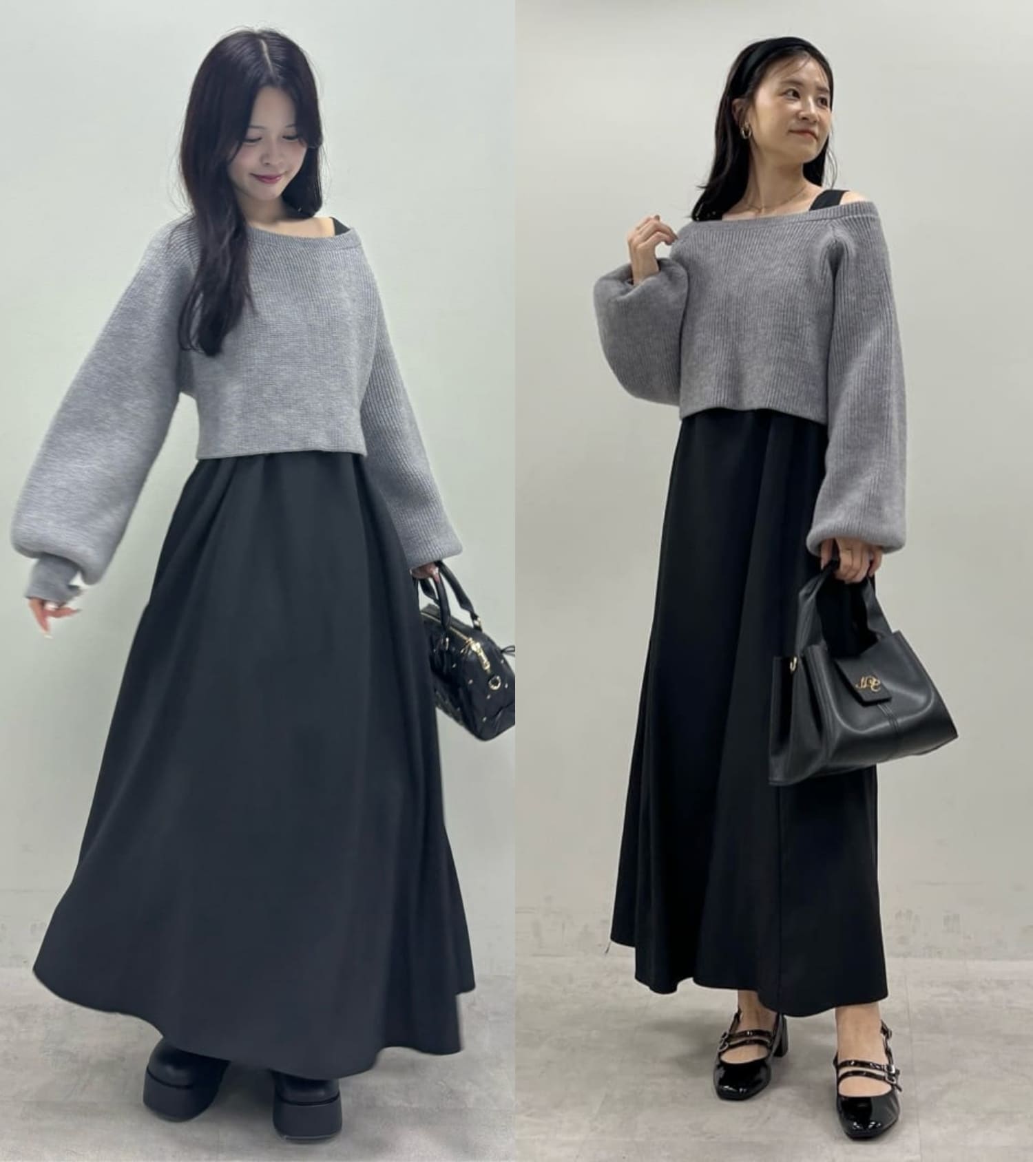 ウエストマークがあるからワンピなボリュームがあってもすっきりしてみえます。ニットが可愛くて着やすいです