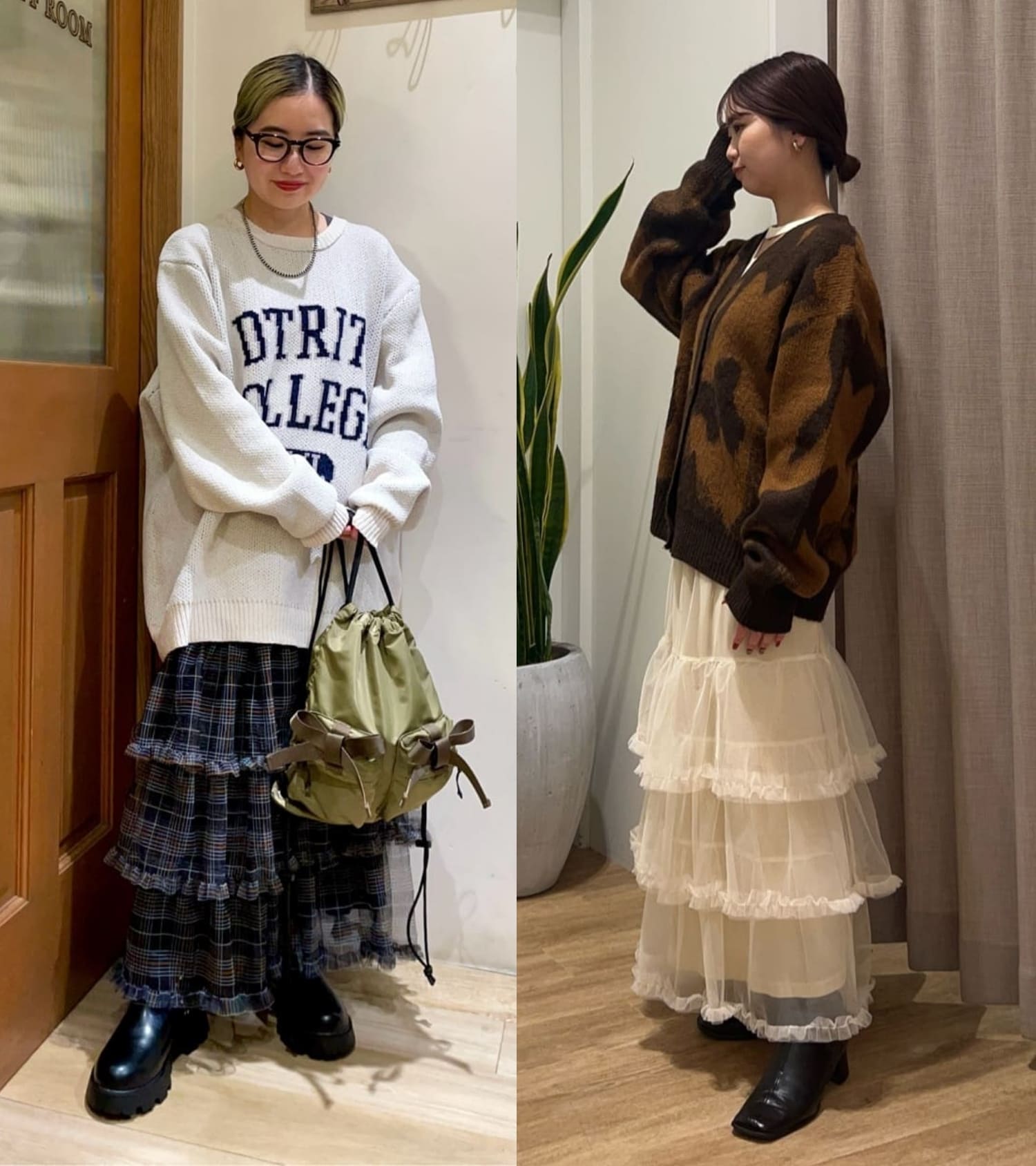 袖がシアーになっているのでジャケットを羽織ってオフィスカジュアル風でも、キャラやロゴスウェットに合わせても可愛い。