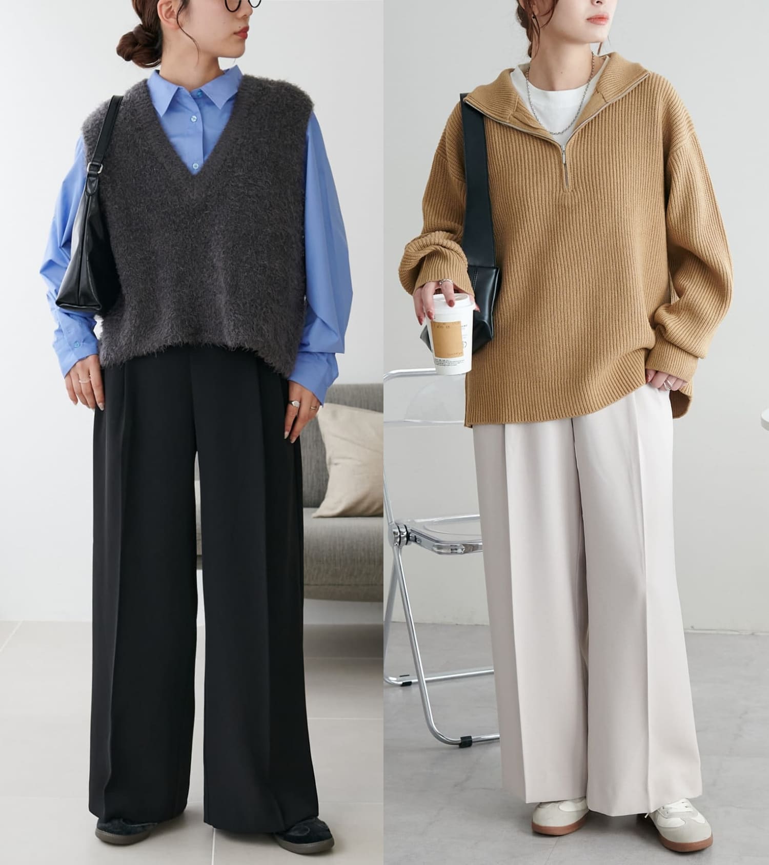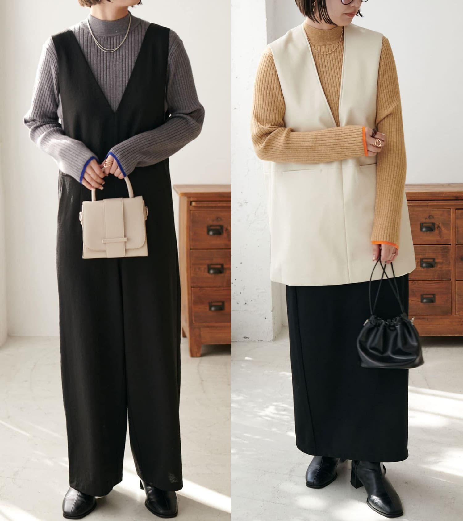 ベストの下にブラウスやTシャツを合わせたりできて便利です。