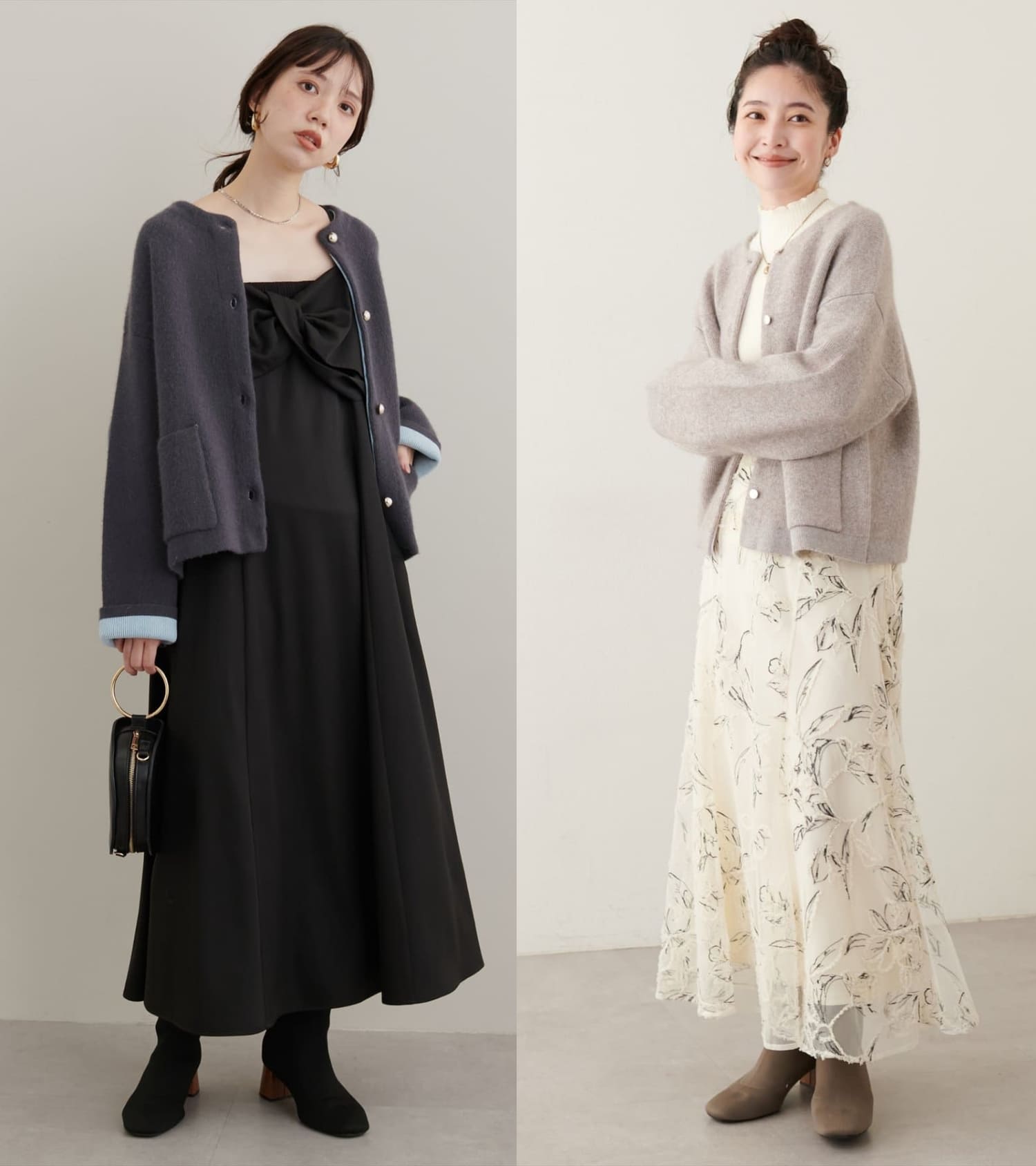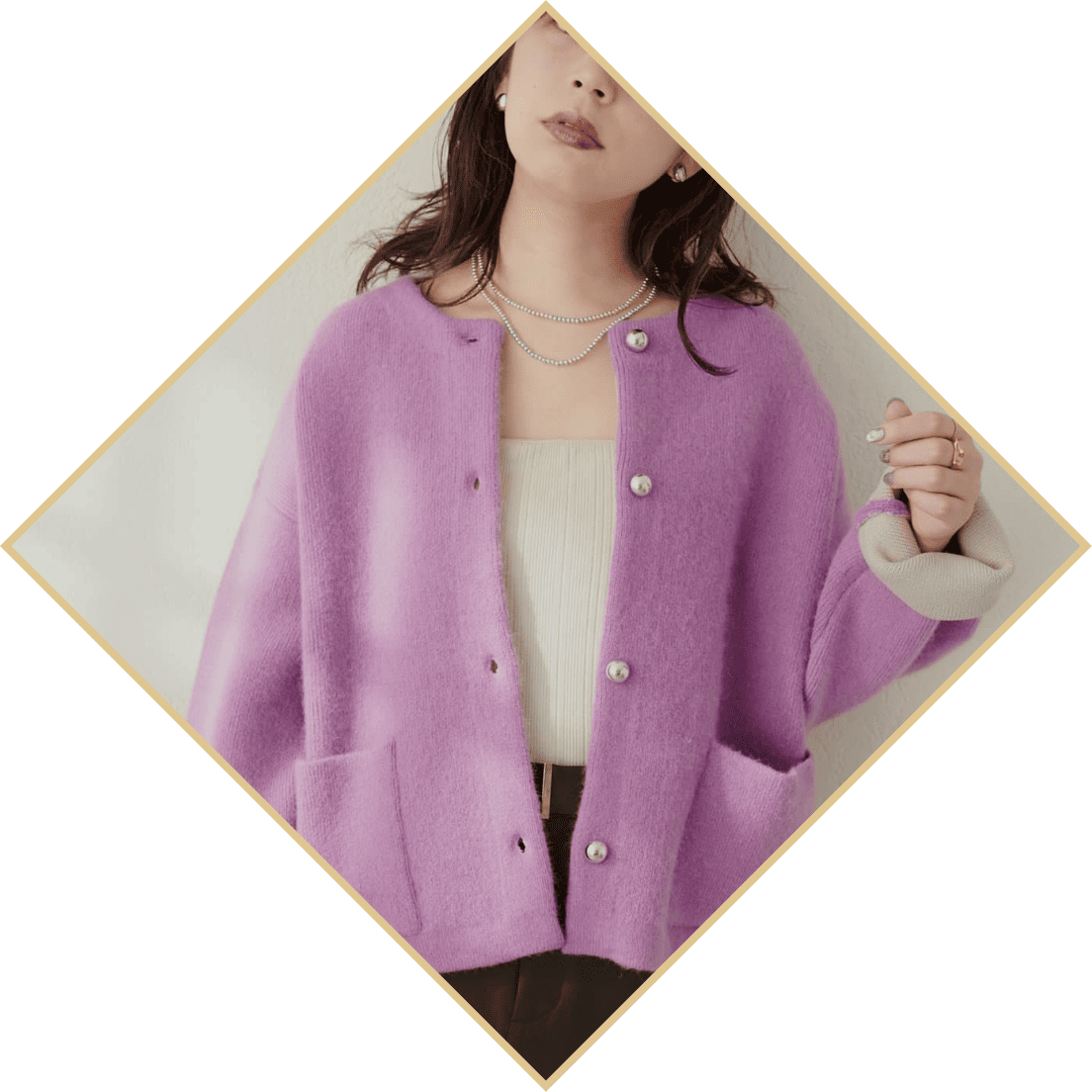 優しい風合いのカーディガンで品のある可愛さがあります。
