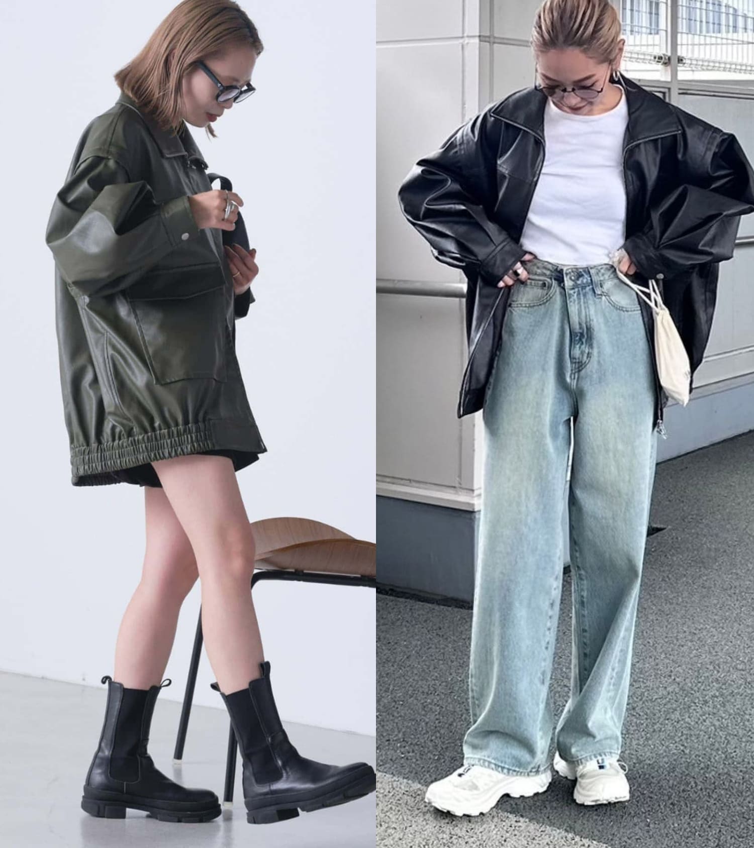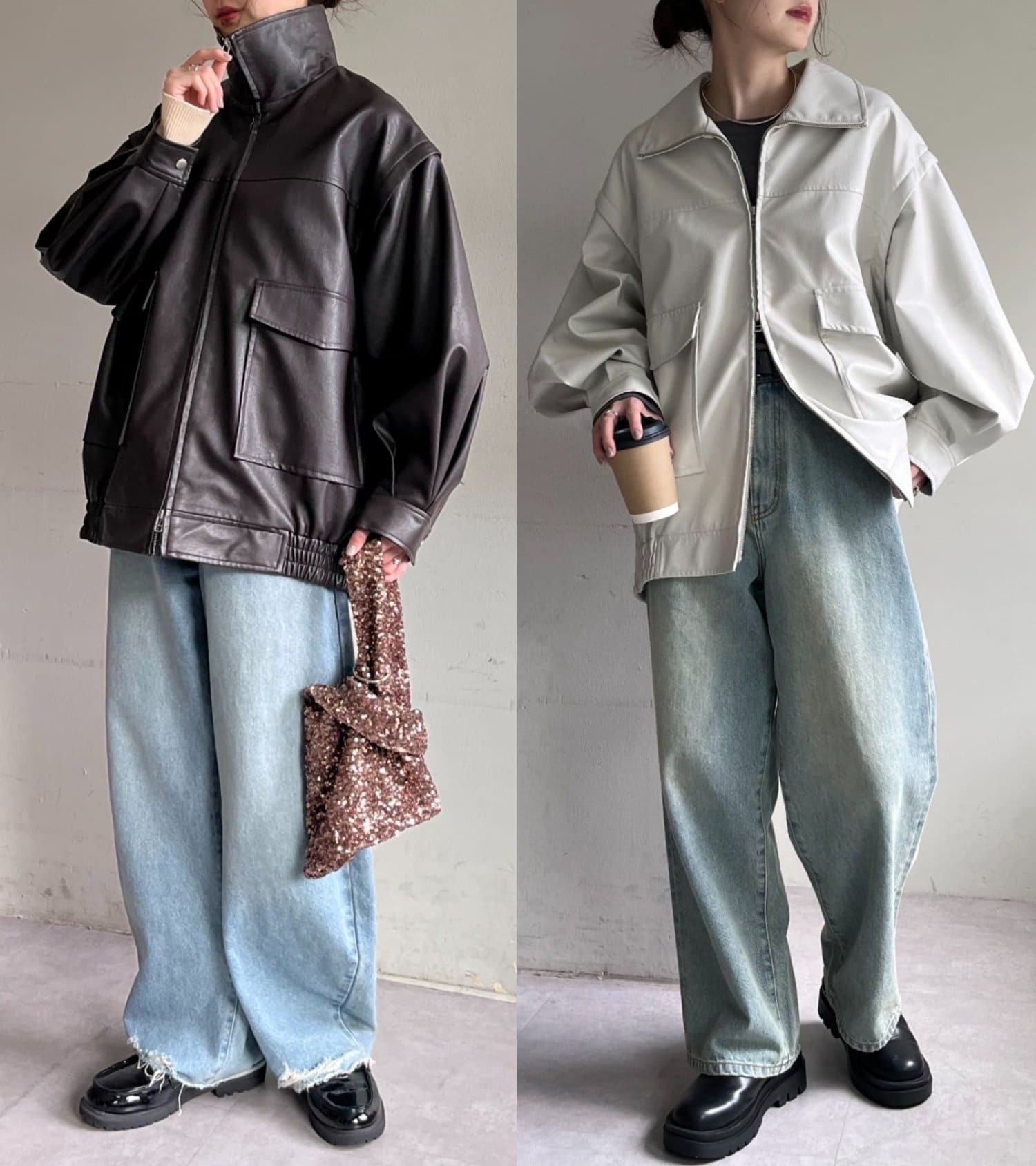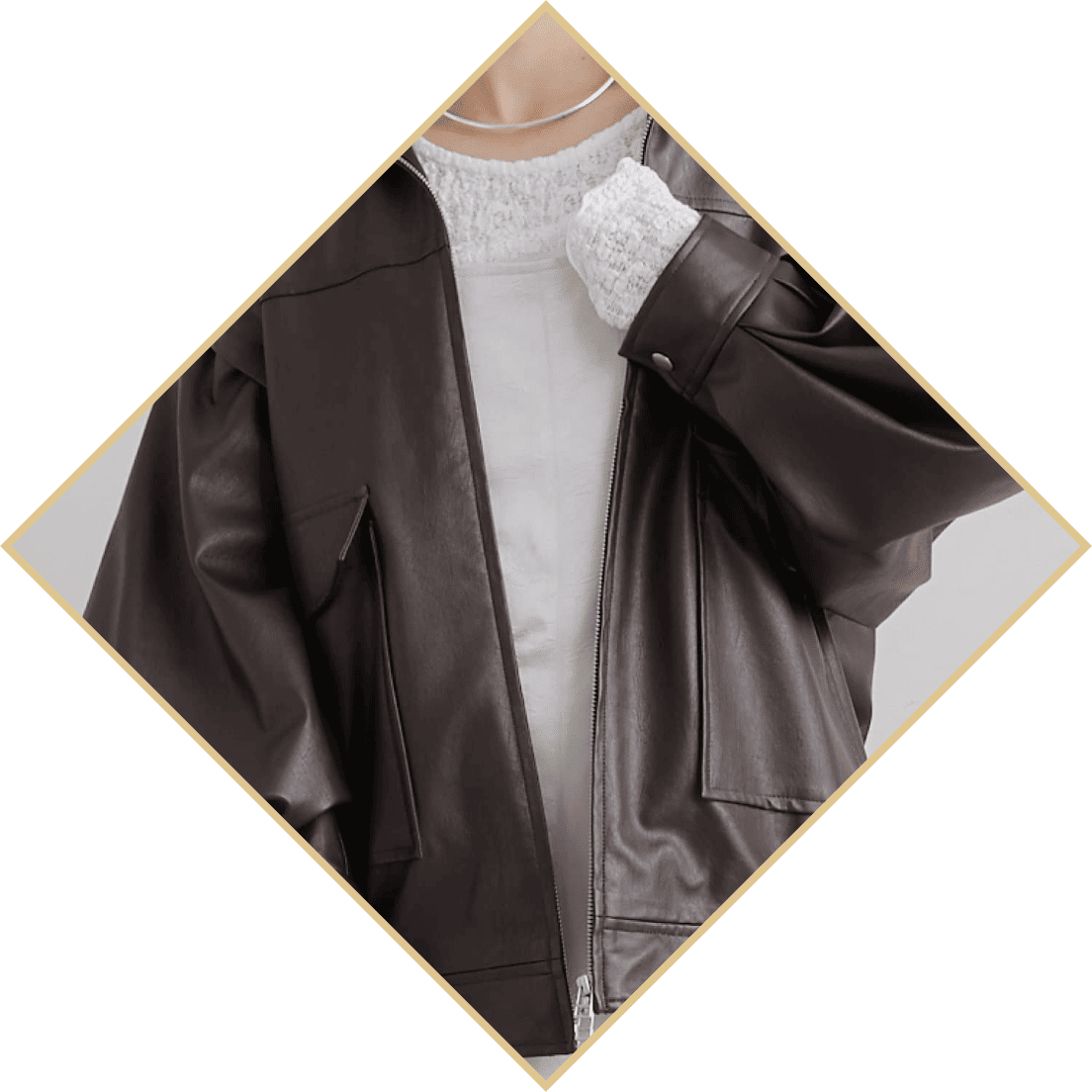 ブラウンのカラーがレザーでも重くなりすぎずに着れてとても良かったです!ビックシルエットでショート丈のスカートなどと合わせて着ても可愛い〜!