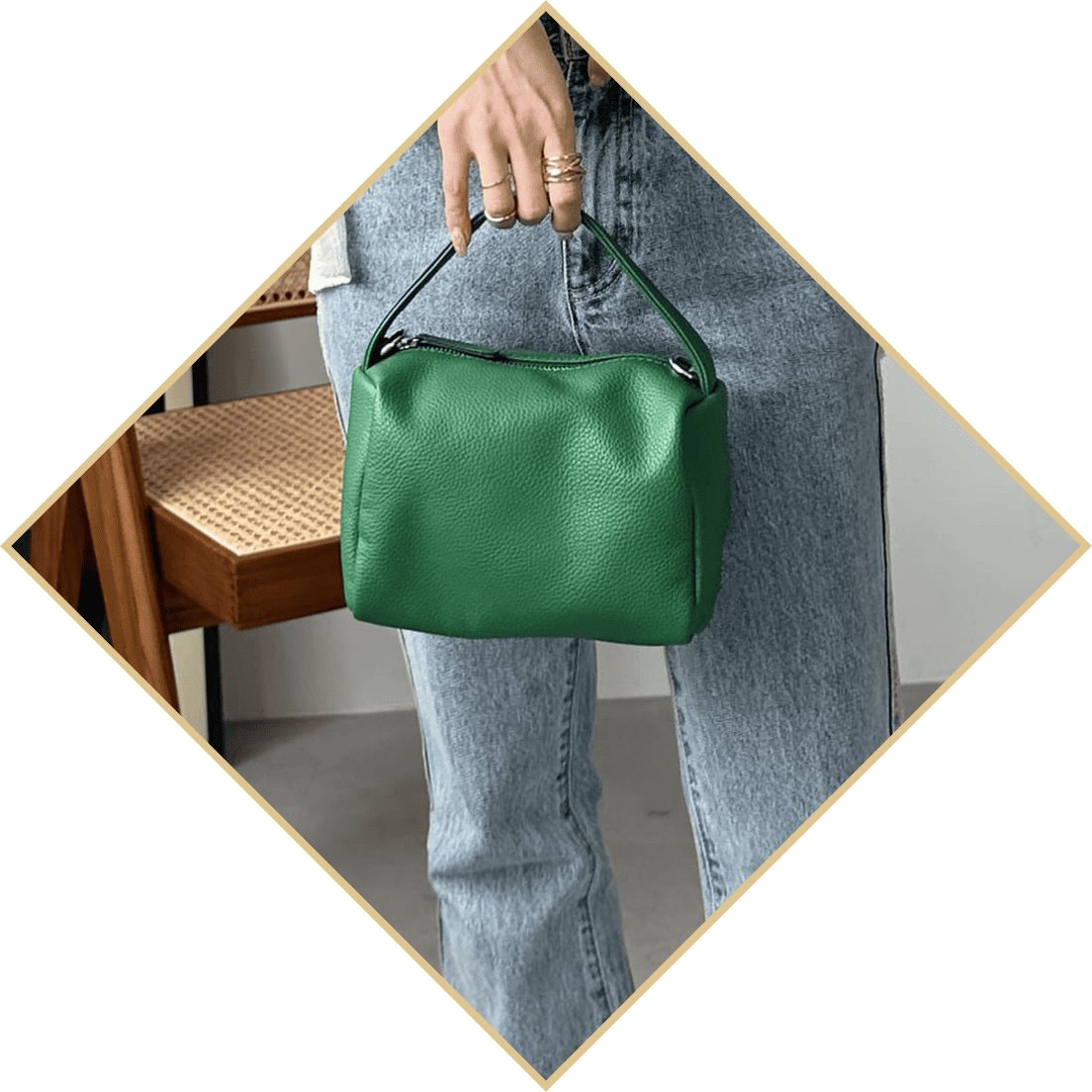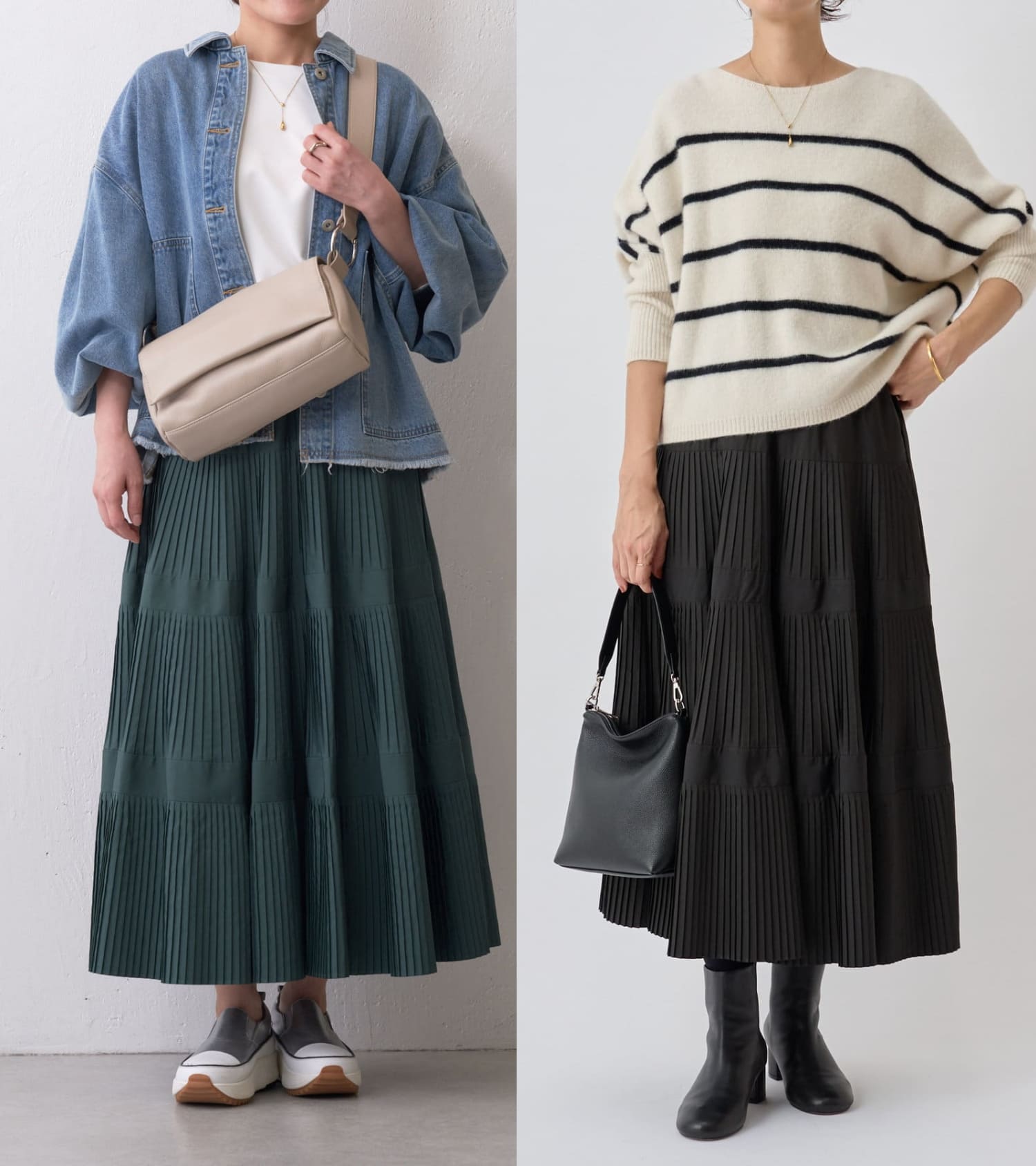 トップスの色を選ばす合わせやすいシックな深いグリーンがとても気に入ってます。