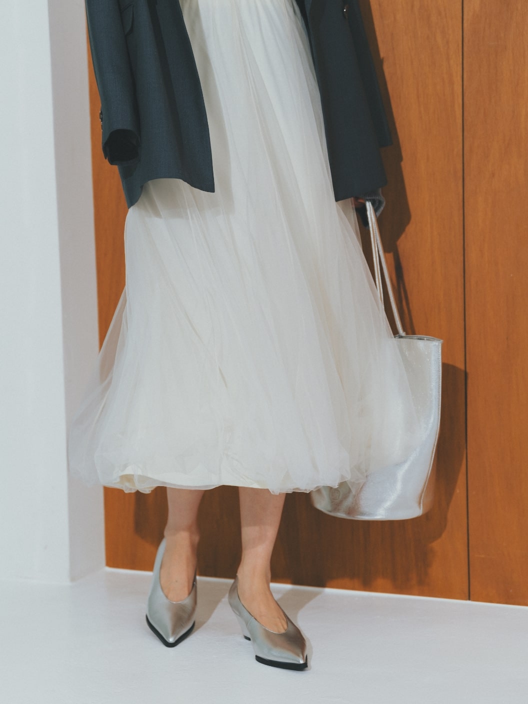 歩くたびに華やかに見せてくれるスカートで、憂鬱な出社時間をハッピーに。