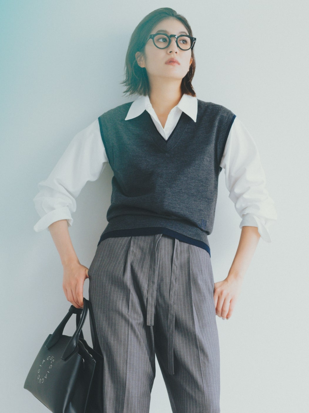 さっと穿くだけで美脚が叶うパンツを取り入れて、自信が湧く出社スタイルに。