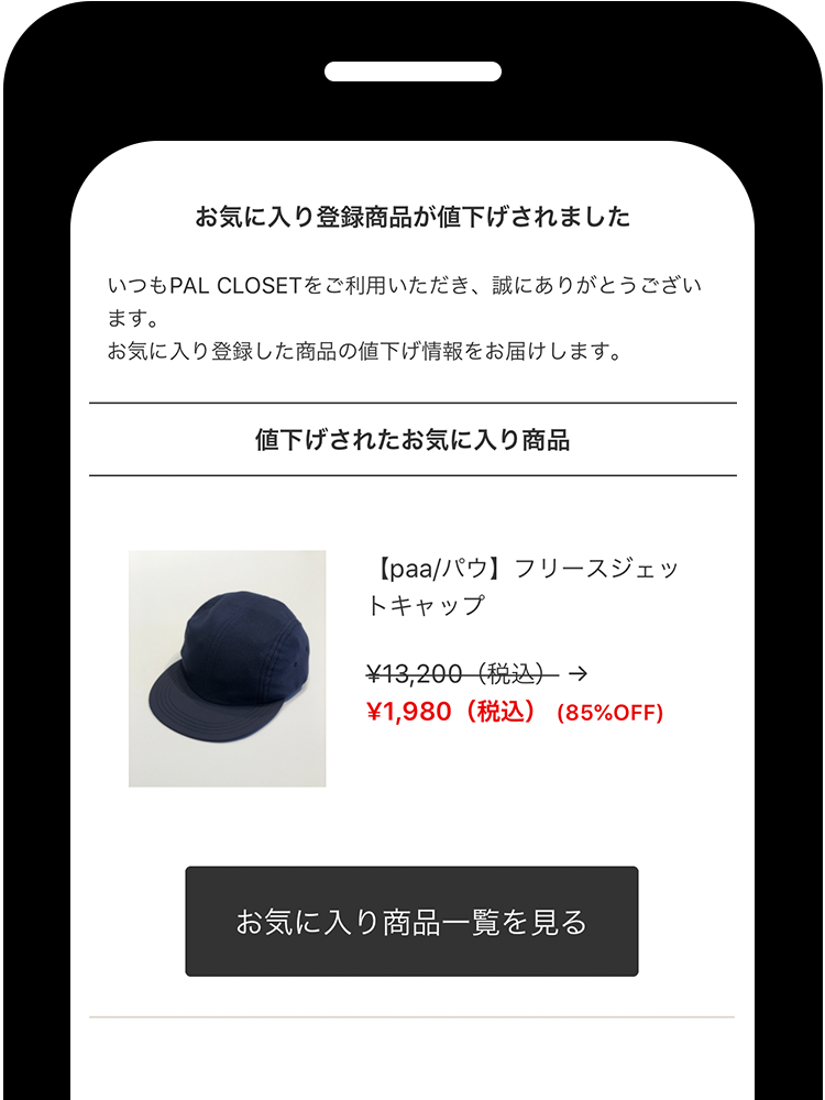 登録した商品が値下げされると
