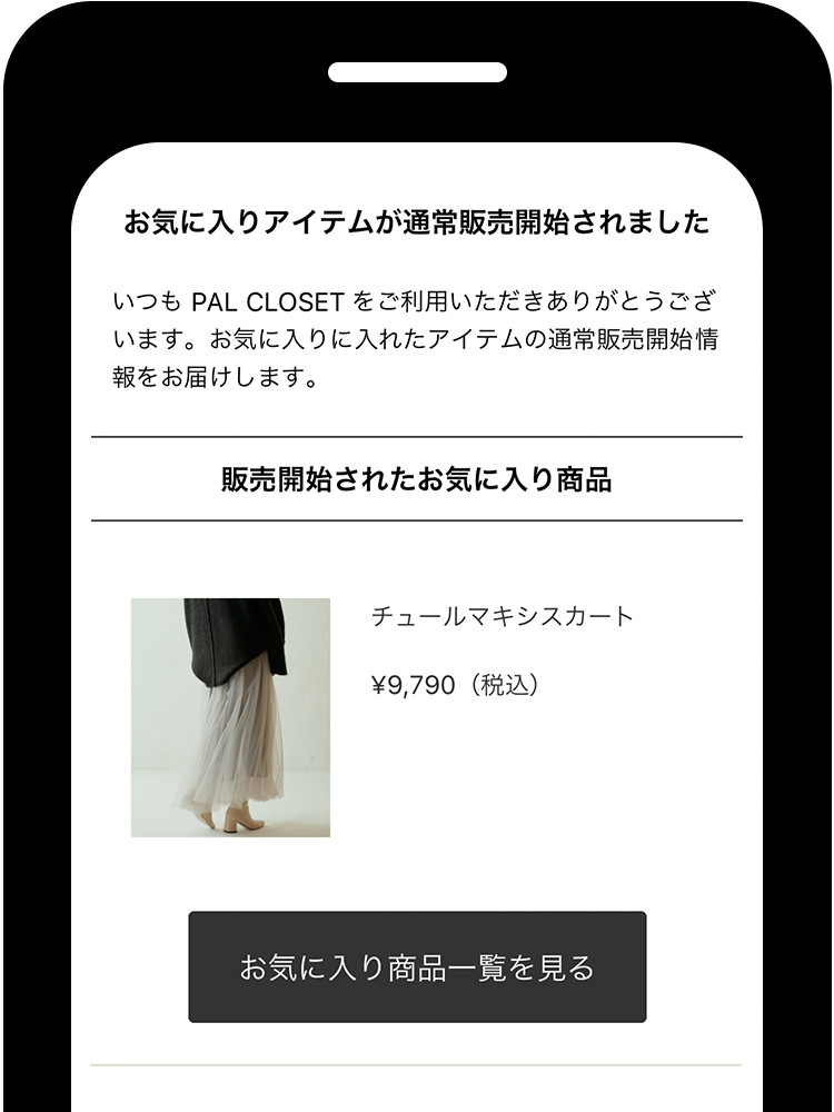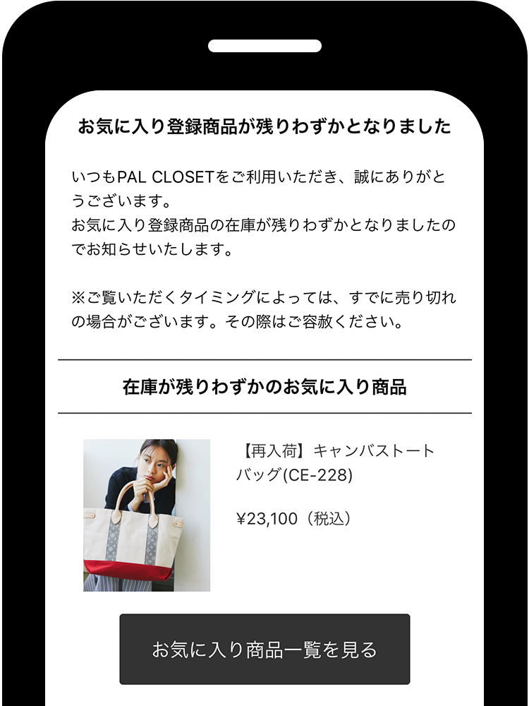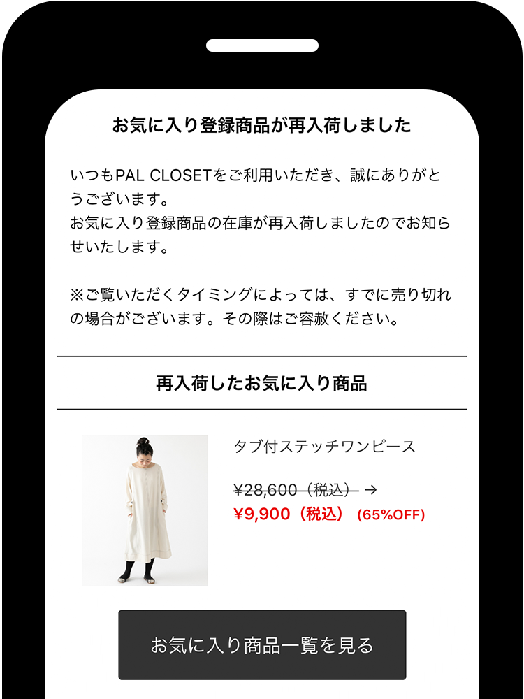 登録した商品が再入荷すると