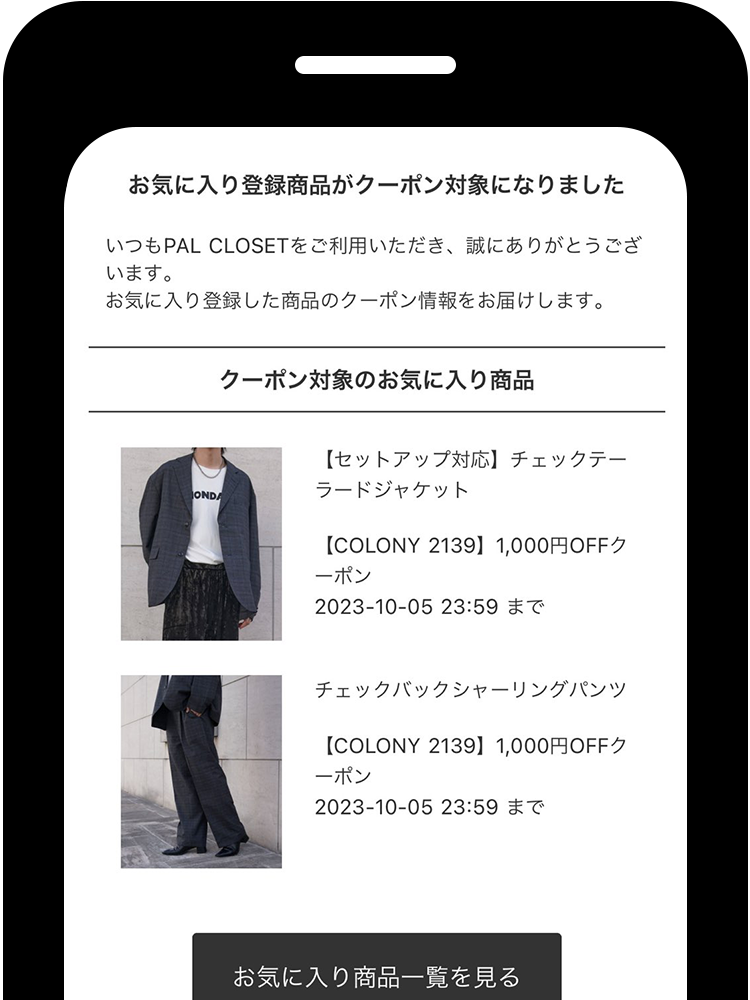 登録したアイテムはお気に入りページからご確認いただけます。