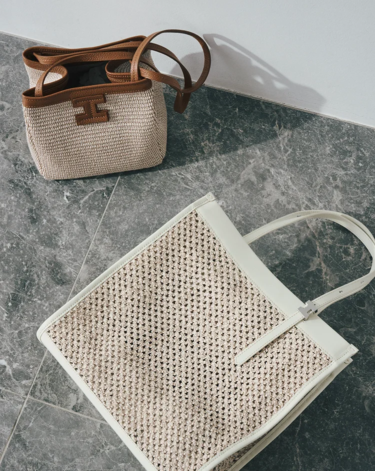 タンクトップとリブスカート、上下をニット素材のグレーで統一。同じ色味でも、編み地の質感を変えることでワントーンの中に心地よいリズムを。究極にシンプルだからこそ、素材の良さが際立つ、大人の余裕を感じさせる洗練された組み合わせ。