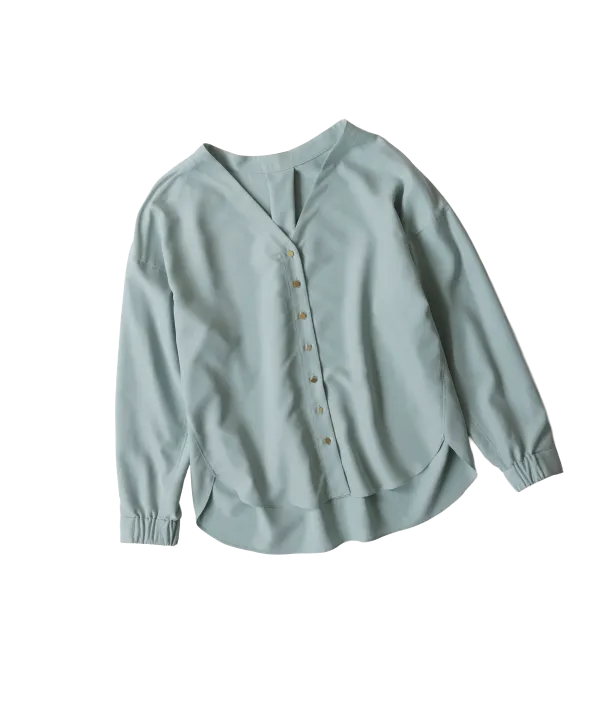 メタルボタンノーカラーブラウス